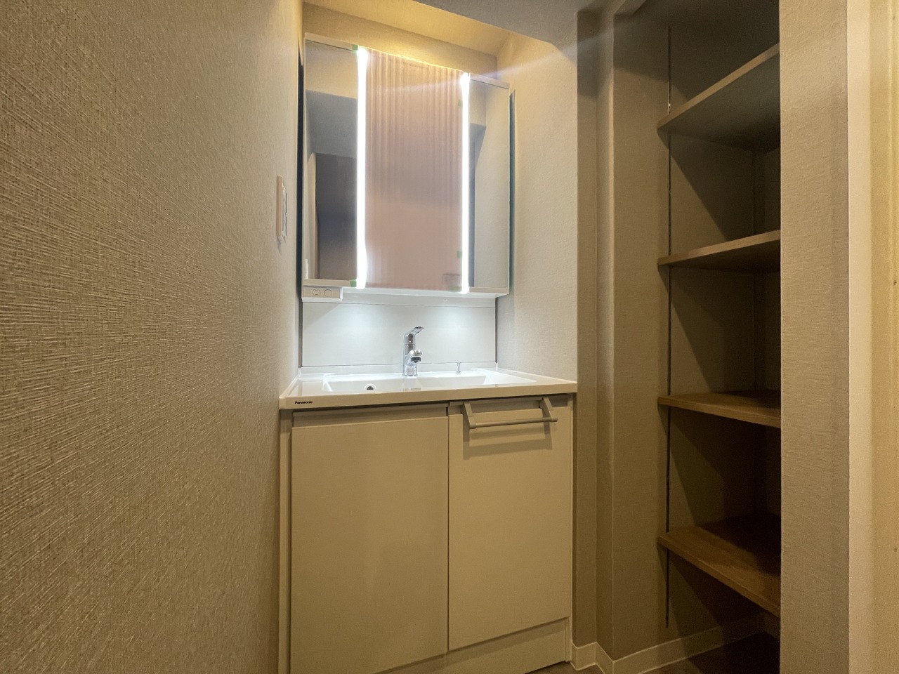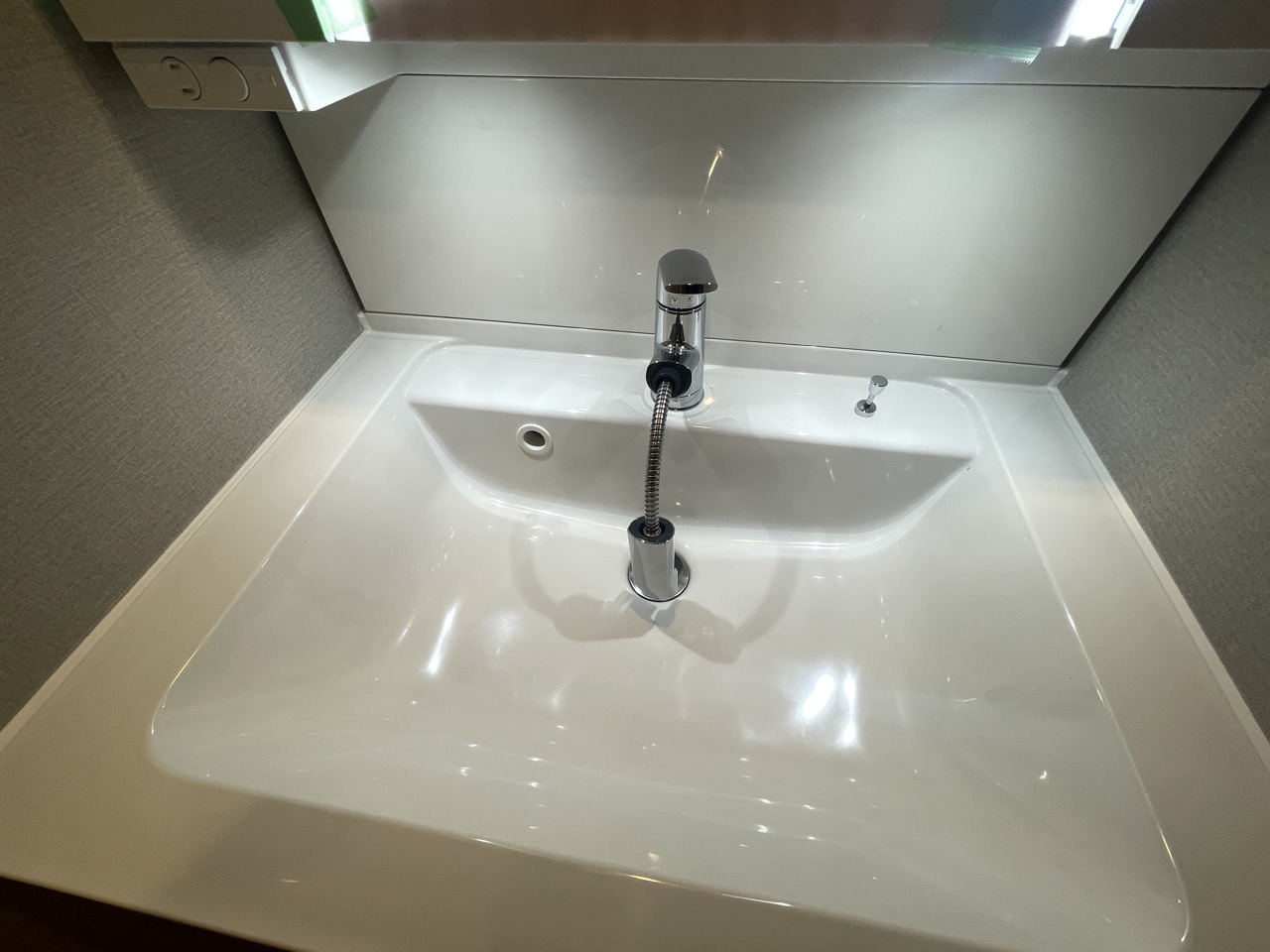 洗面化粧台は清潔感の漂うホワイトをベースカラーに、シンプルなデザインで。
