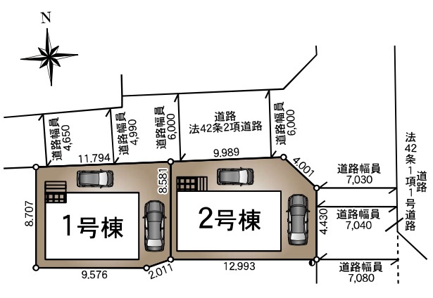 | 接道 | 北側6M公道に9.98M接道 東側7M公道に4.43M接道 |