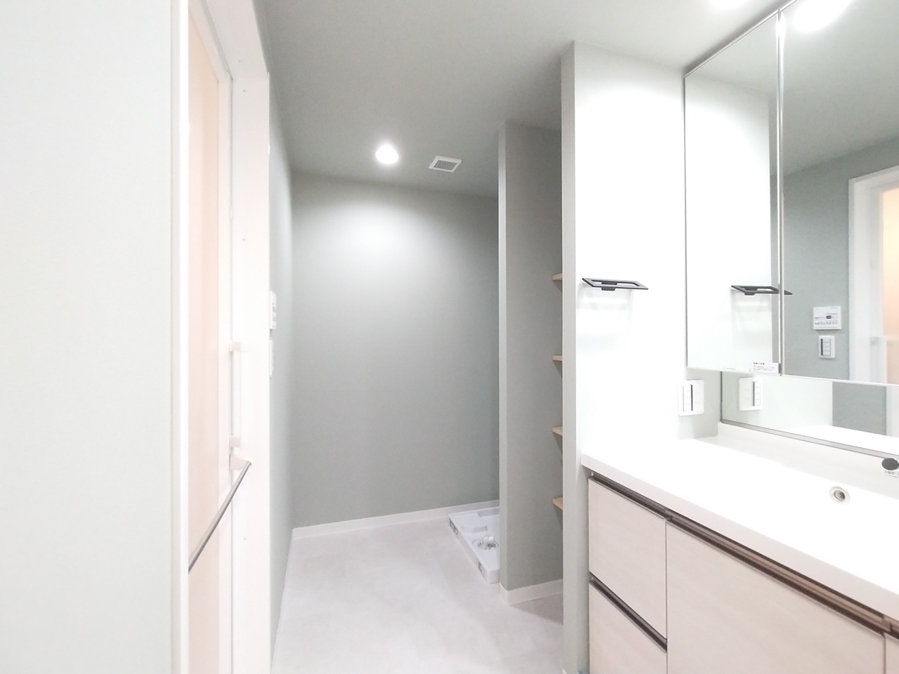 たっぷりの収納を設けたシャワー付洗面台で快適な暮らし。