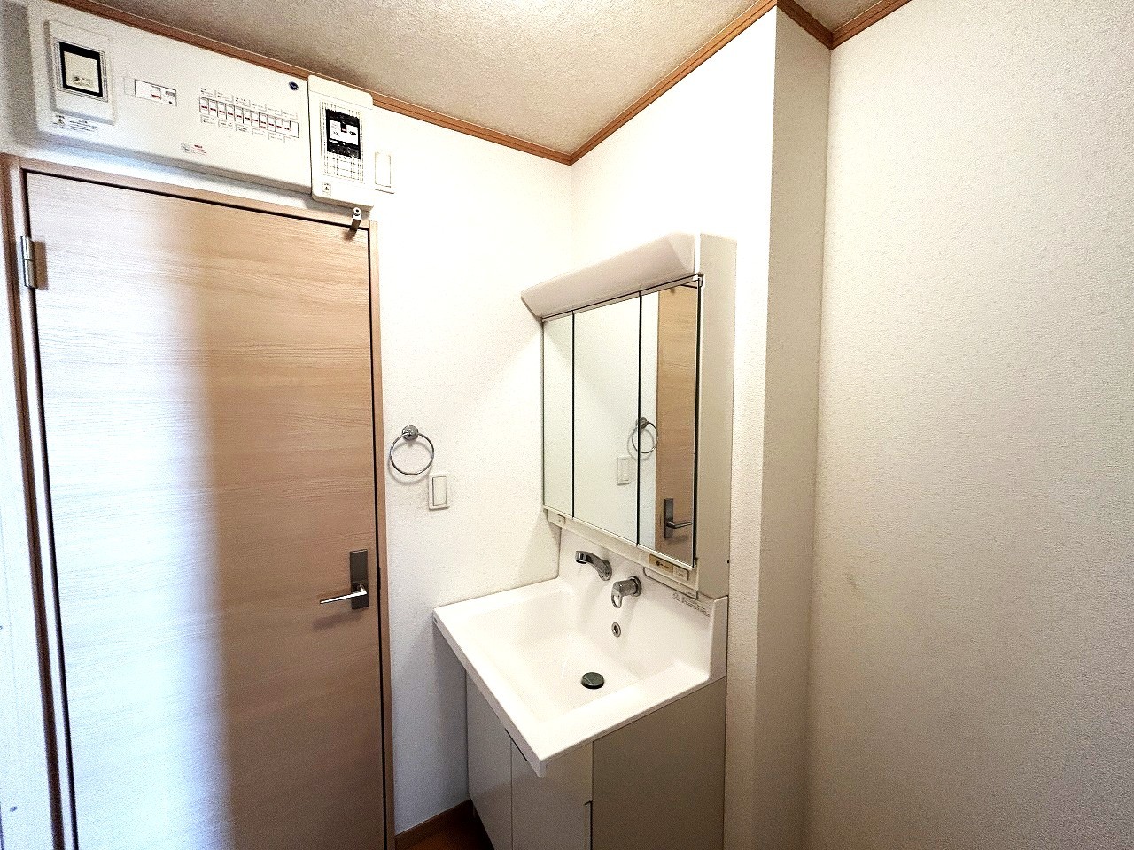 お出かけ前の身だしなみに一歩差がつく三面鏡。ミラー裏にはたっぷり収納もございます。