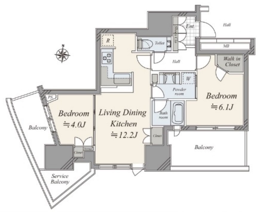 | 間取 | 2LDK (LDK12.2帖、洋室6.1帖、洋室4.0帖) | ||