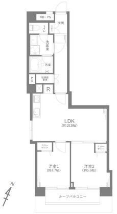 | 間取 | 2LDK (LDK10.0帖、洋室5.5帖、洋室4.7帖) | ||