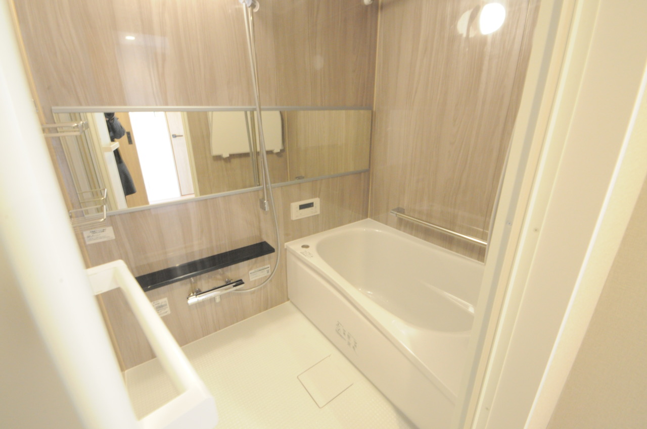 落ち着いた色味の浴室で1日の疲れをゆっくりと癒してください。