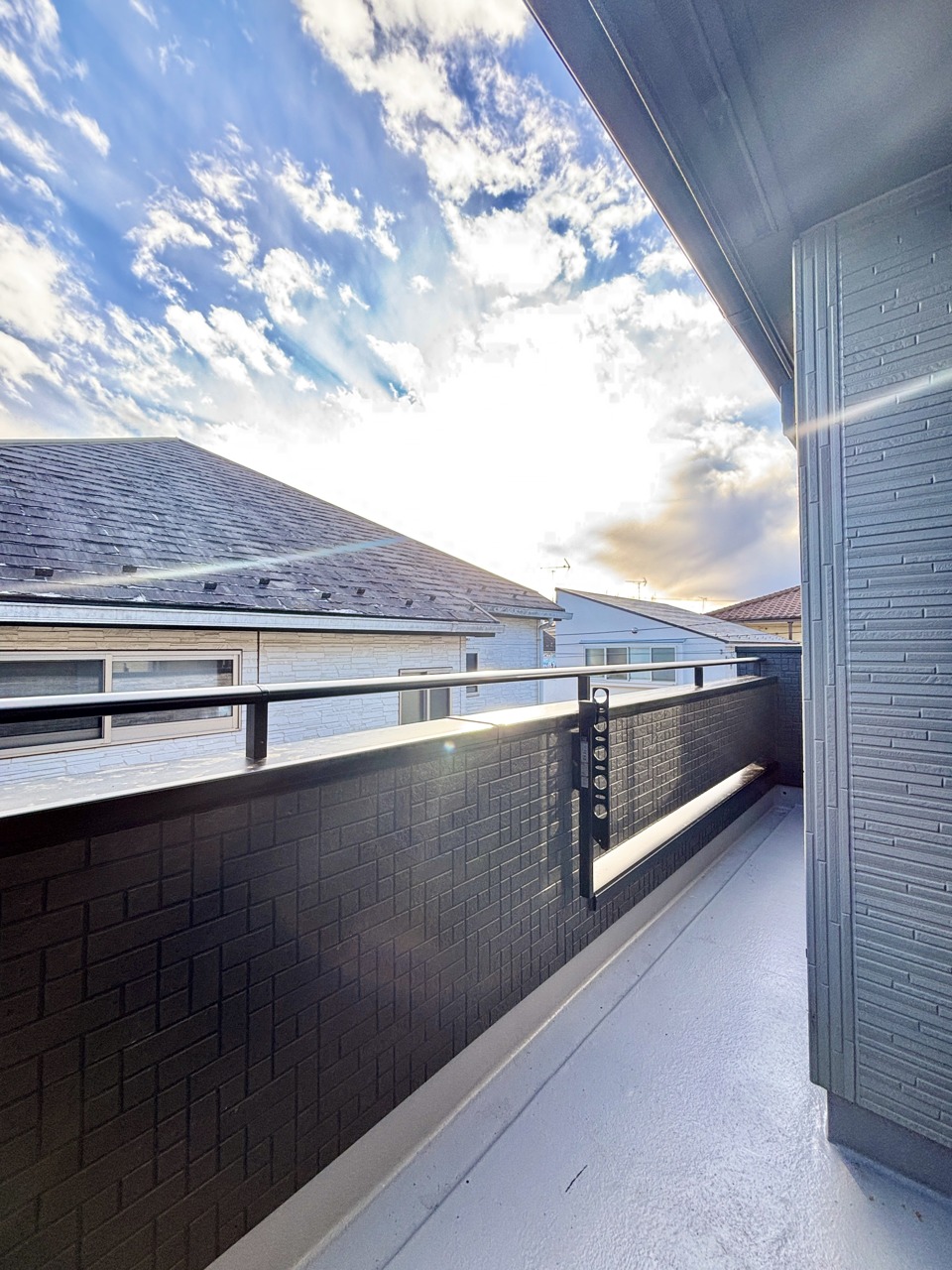 陽ざしが差込む明るいバルコニー。奥行きのあるバルコニーはお洗濯時に助かります。