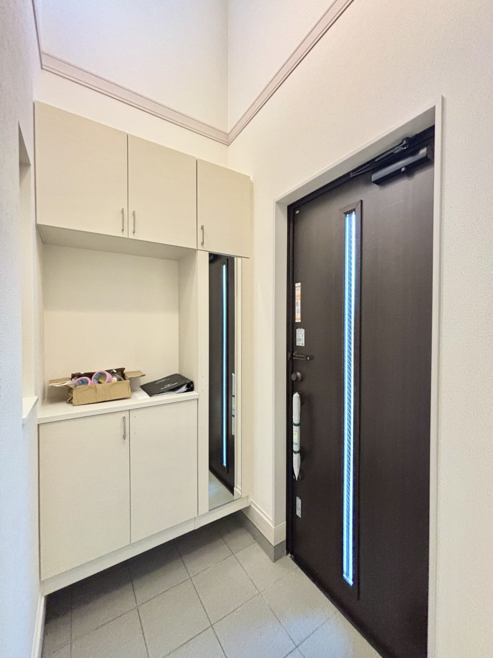 明るく開放的な玄関、靴の脱ぎ履きもしやすく、収納も豊富でご家族皆様の靴をスッキリ収納できます。
