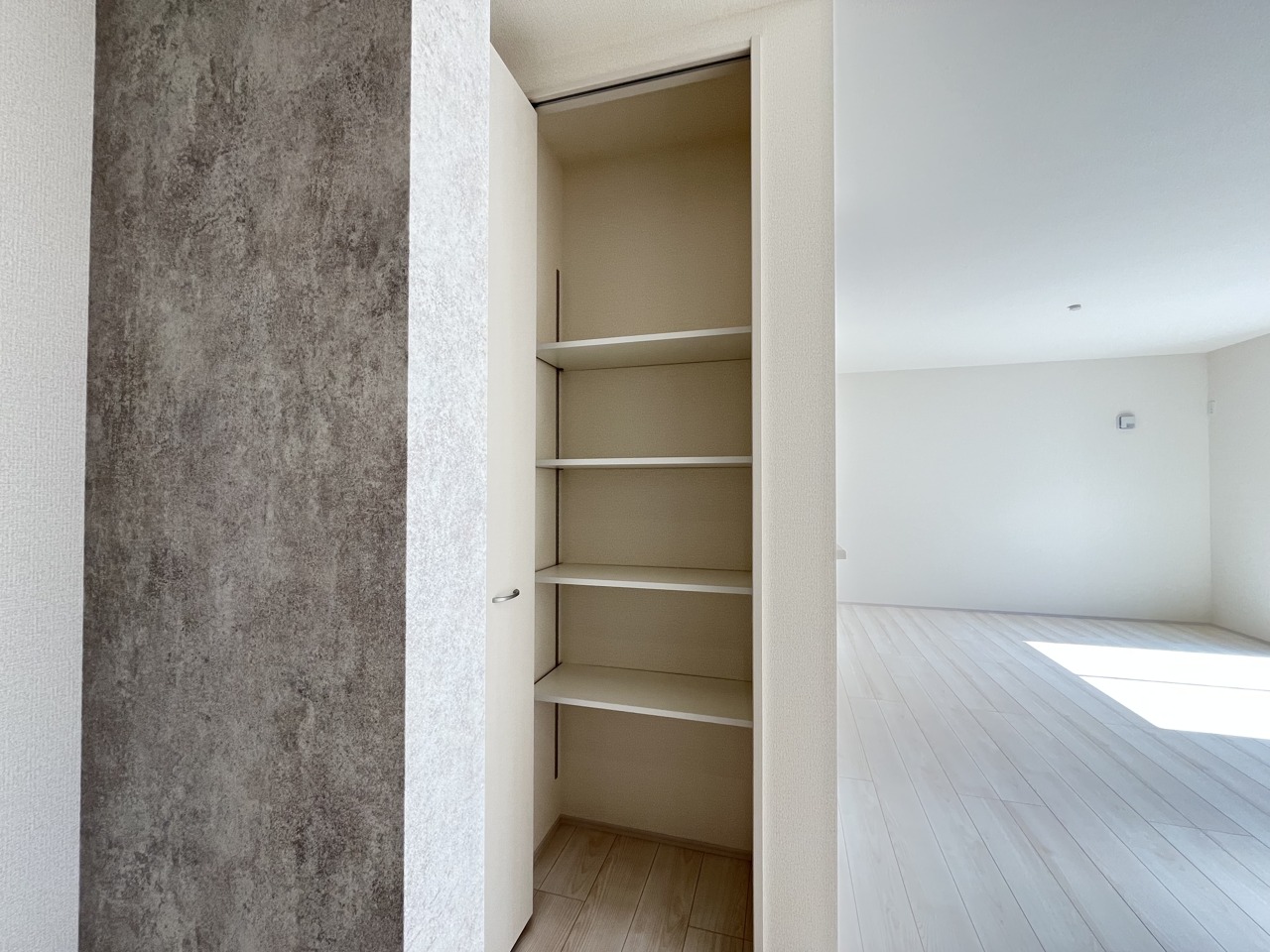 どんな家具にでも相性が良い清潔感ある白色調のクロスを採用。主張しすぎない配色、耐久性にも優れた床材は日々のメンテナンスも楽に、快適に過ごして頂けるよう考えられています。