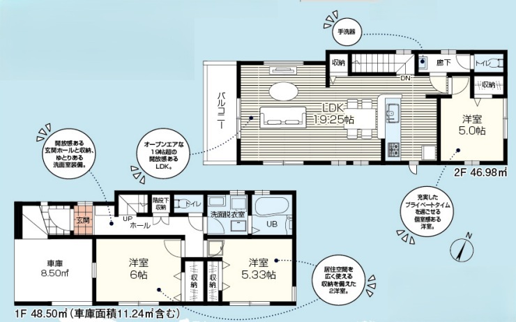| 建物面積 | 95.48m² 実測 (車庫面積11.24平米含) | ||