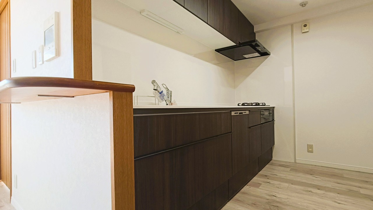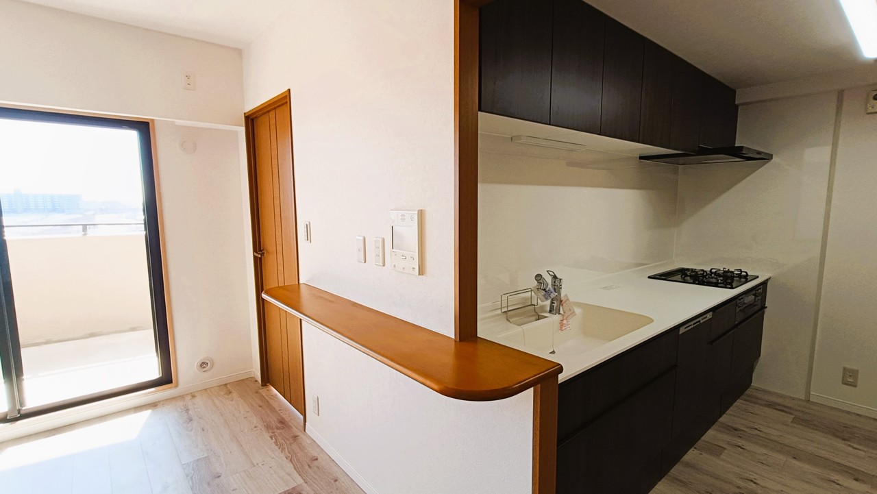 キッチン、床材、クロスが新品に交換済み。中古ながらも築年数を感じさせません。