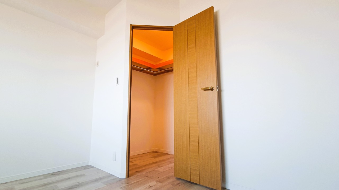 季節物の衣類もスッキリ収納できる、ウォークインクローゼット。