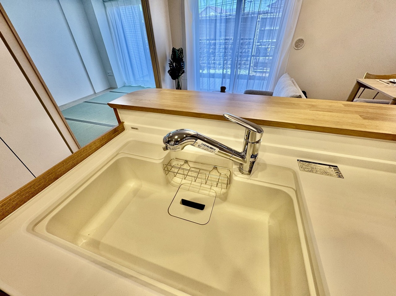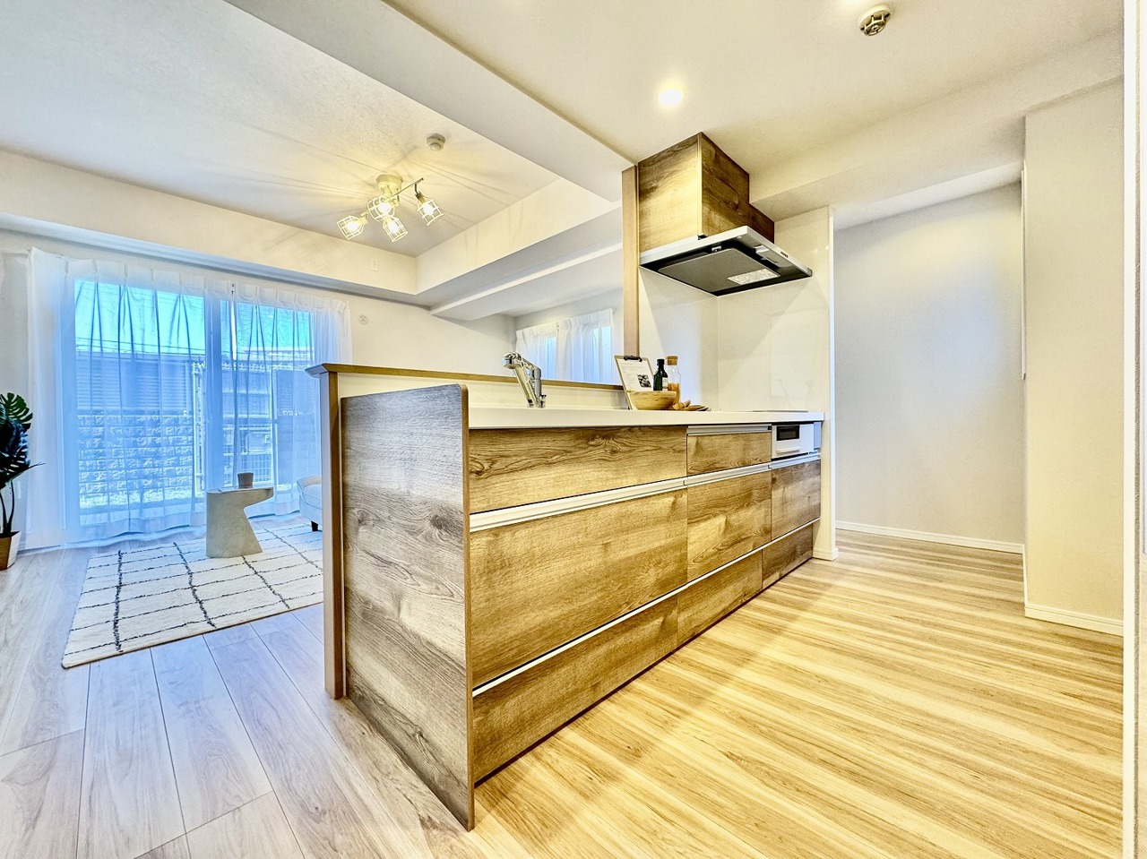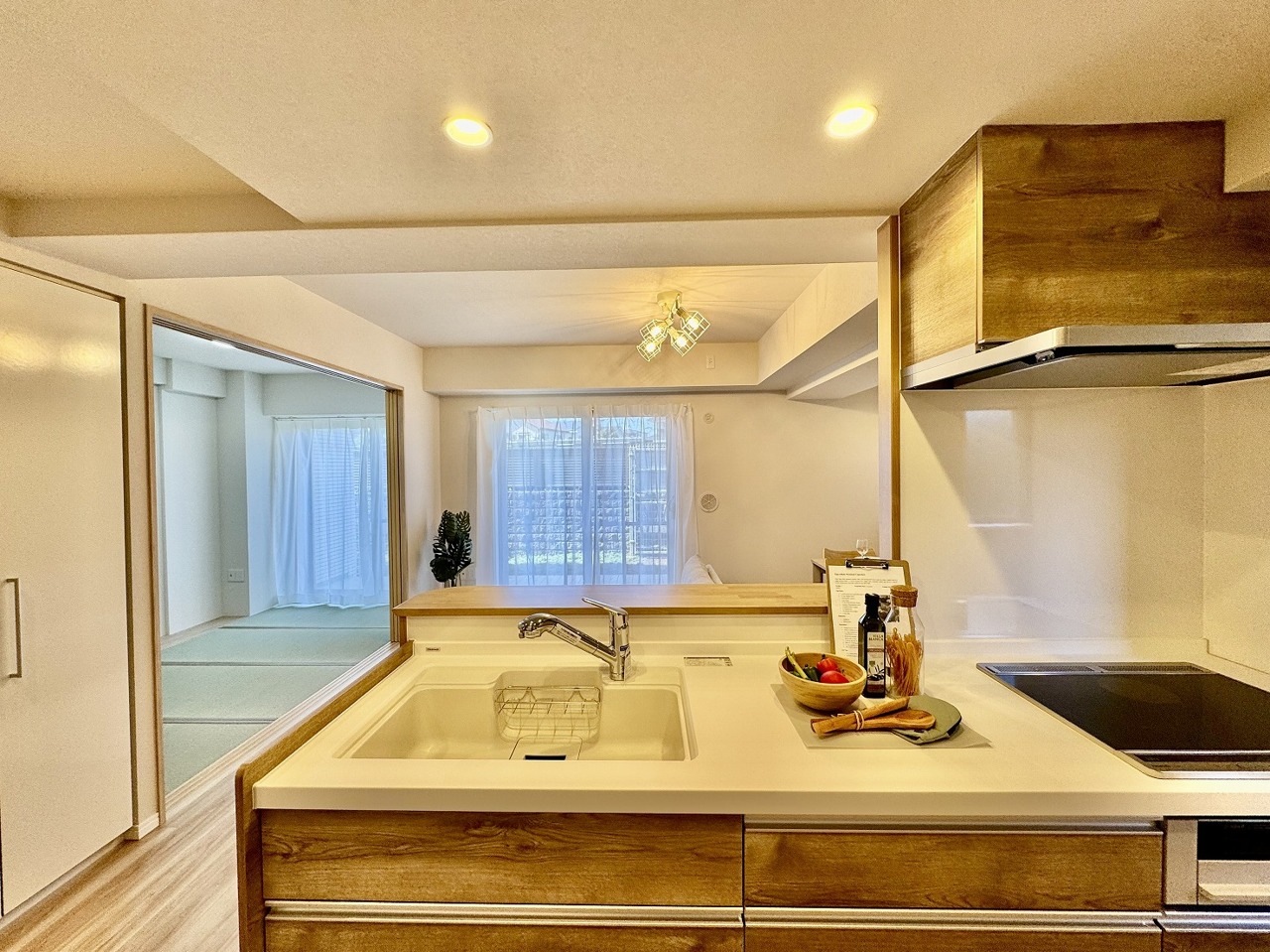 リビングで遊ぶお子様を見守りながらお料理ができる、対面キッチン。
