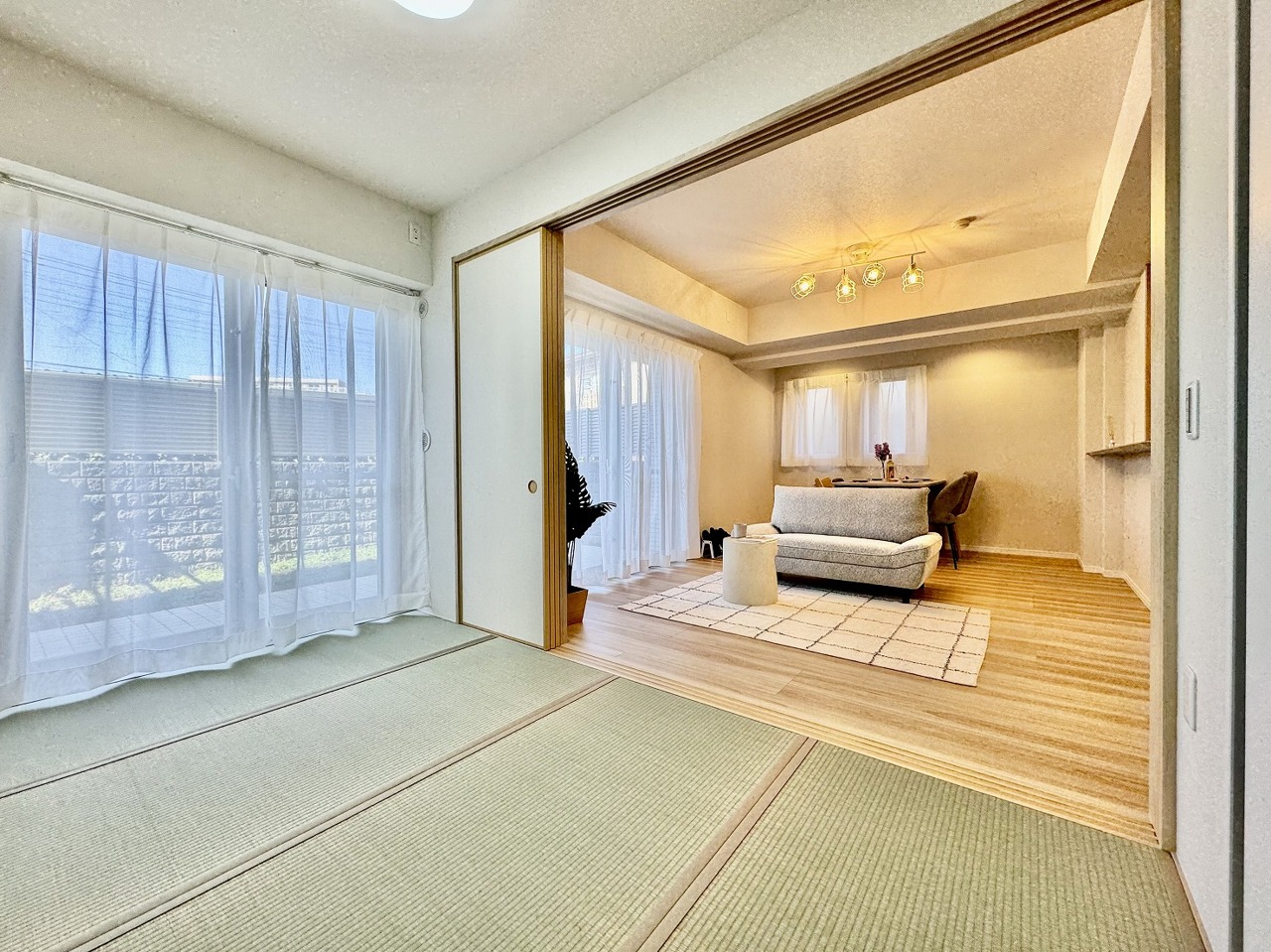 LDK+隣接和室、開放すれば計約20.3帖。おもてなしスペースにもどうぞ。