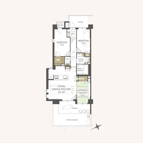 戸建てのように使える人気の庭付き。プライベートな空間が広がります。