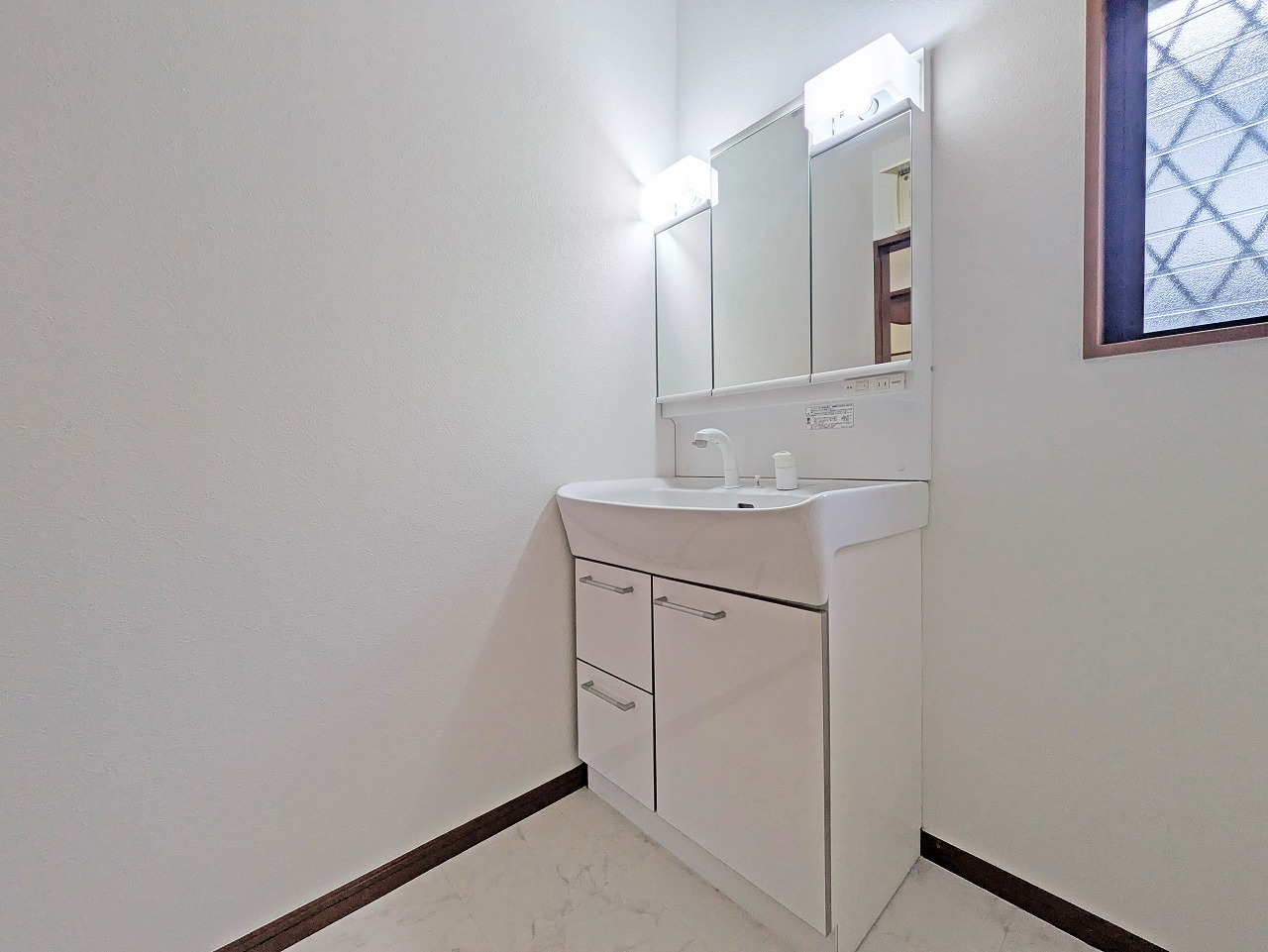 洗面化粧台は清潔感の漂うホワイトをベースカラーに、シンプルなデザインで。