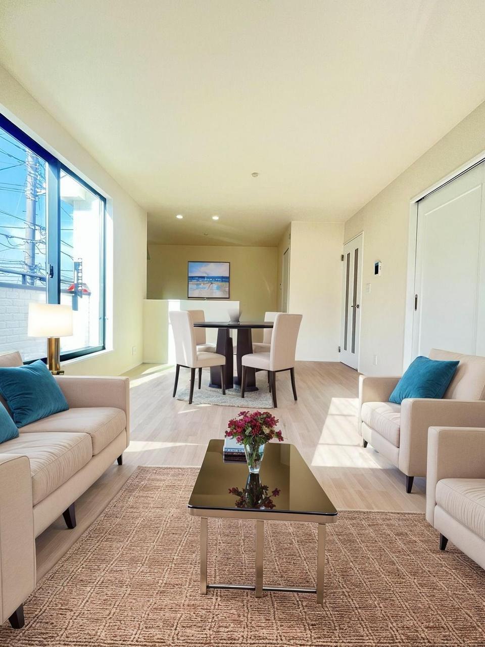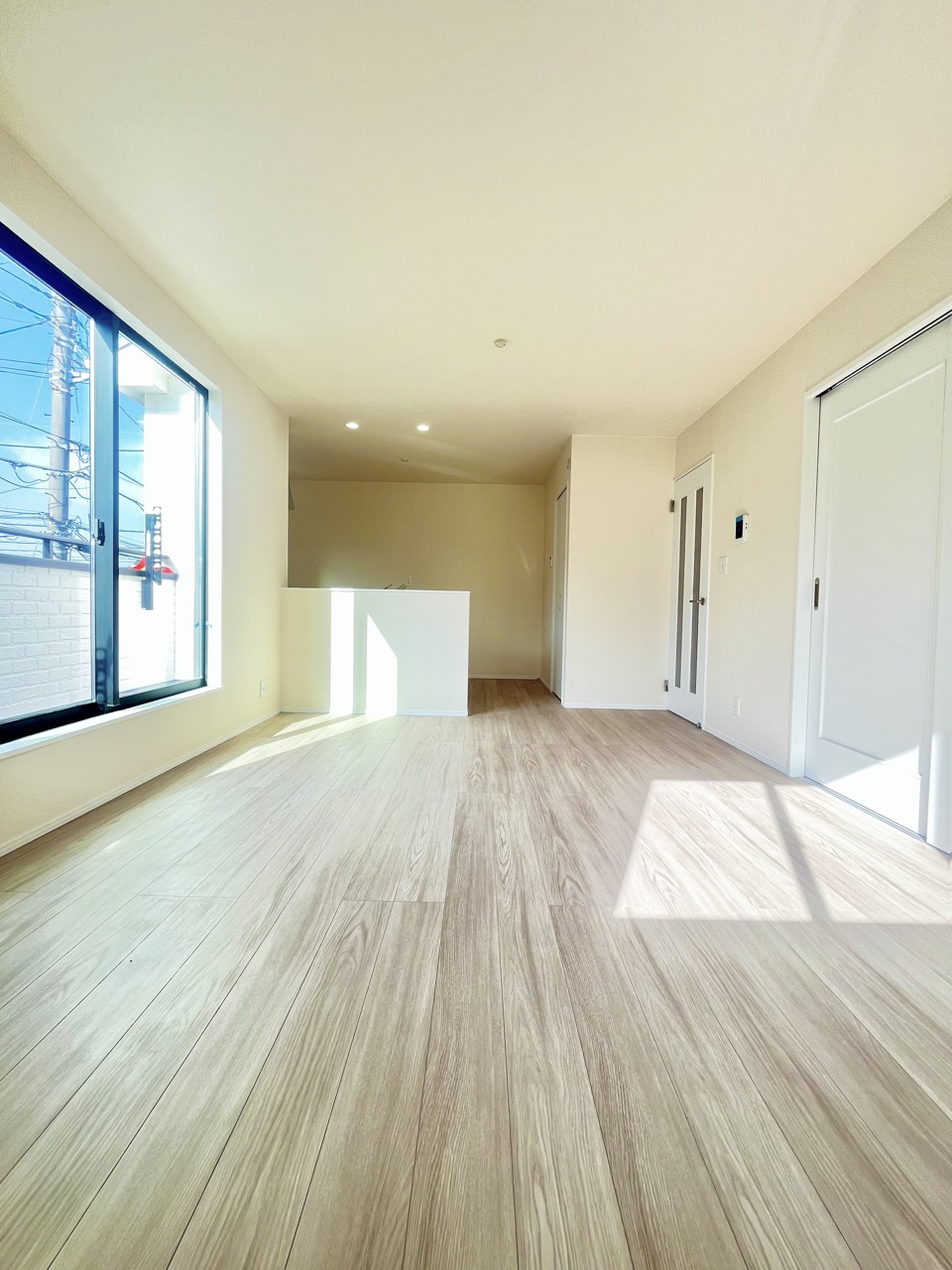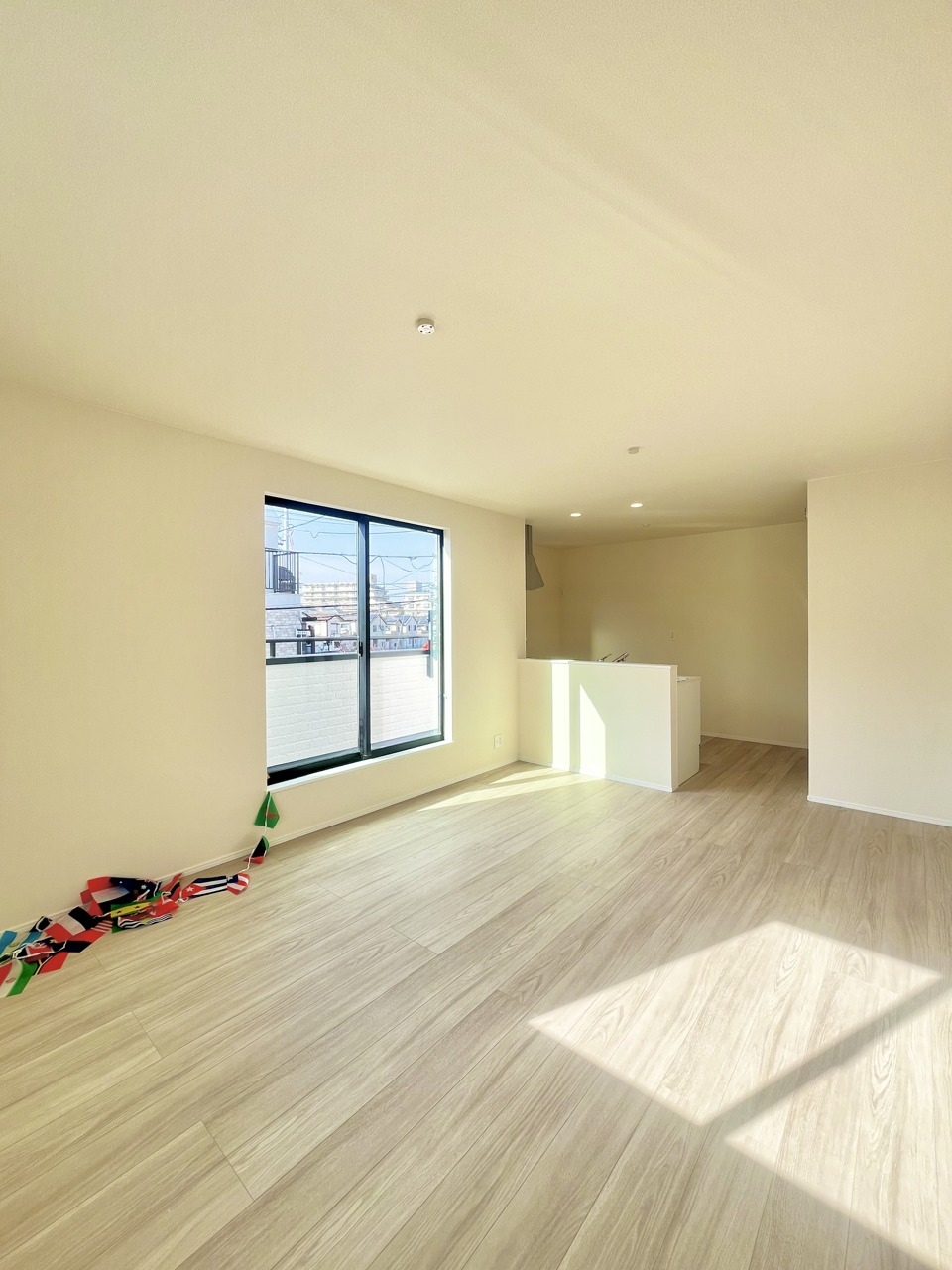 大きな開口部から明るい光が差し込む、日中の室内の明るさがこの部屋の魅力です。