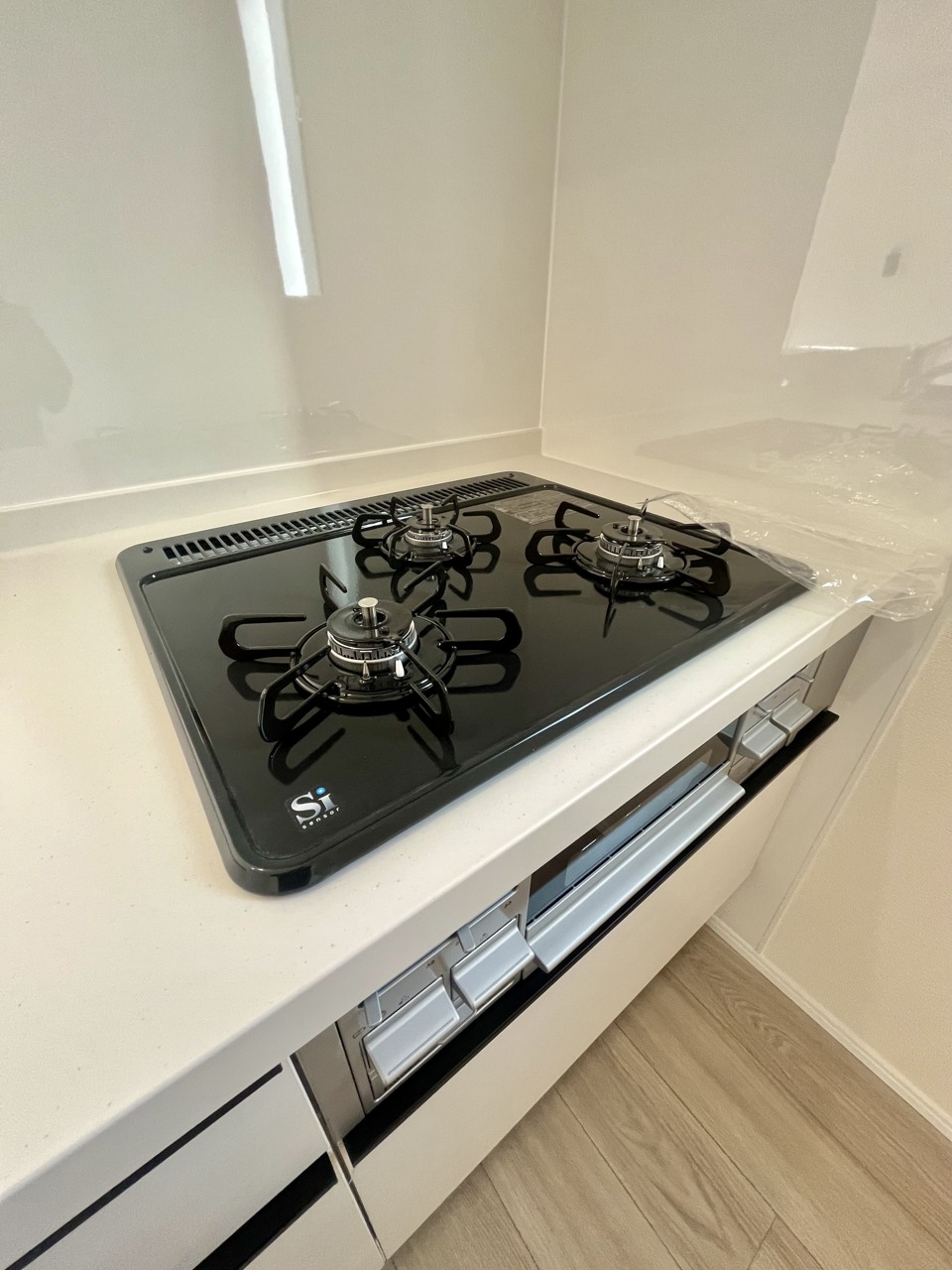 リビングにいる家族の顔が見渡せるカウンターキッチン。お料理もより一層おいしく、楽しく。食器棚を背面に設置しても十分な広さを確保しています。