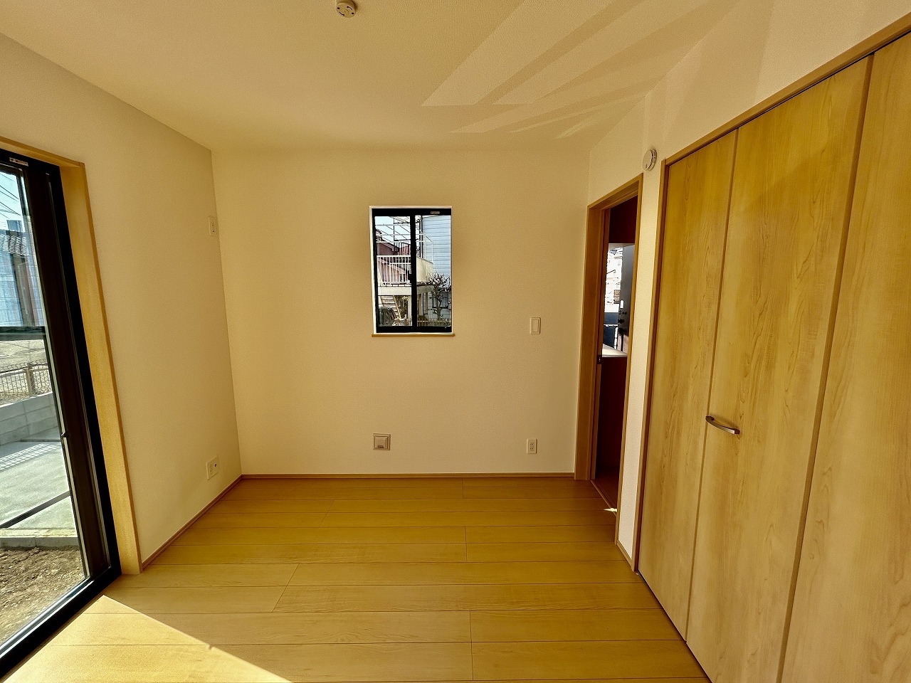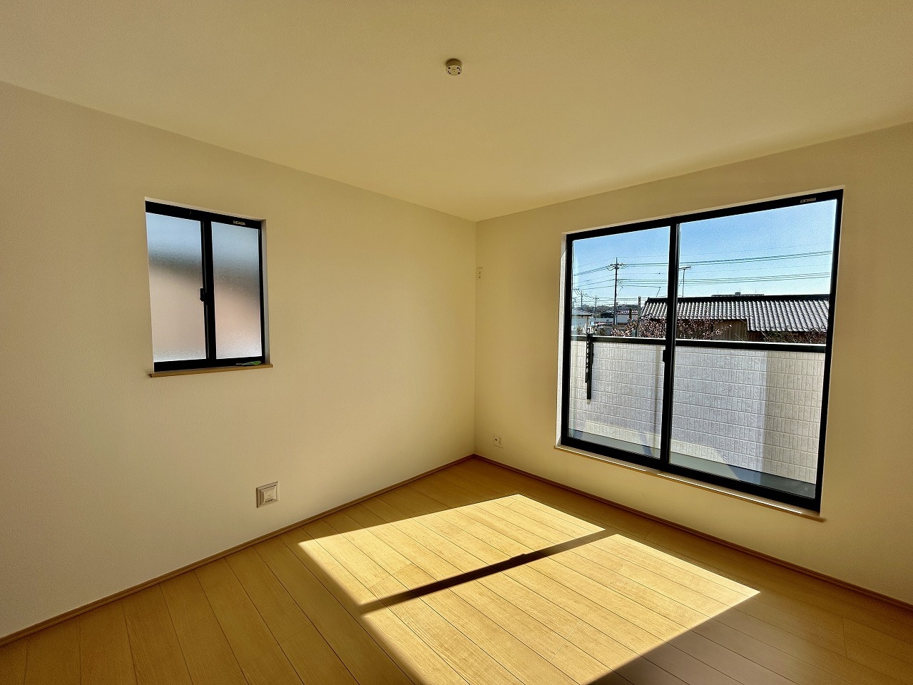 ゆとりの7帖ある寝室、陽光が入りやすく朝の目覚めも気持ち良く起こしてくれます。