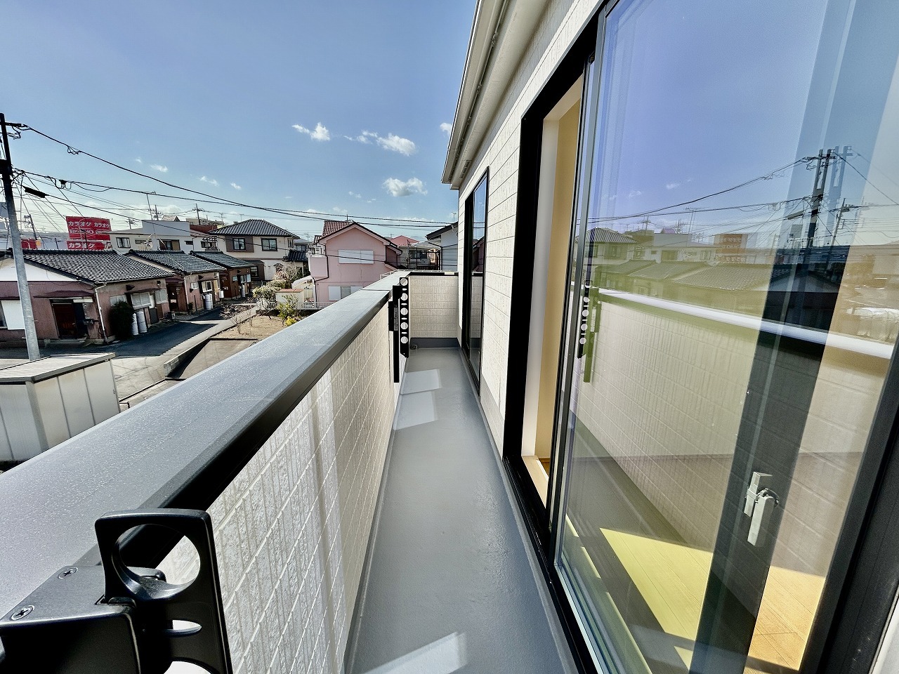 南側のお部屋から出入りできる、奥行きのあるワイドバルコニー。心地よい陽射しと暖かな風を楽しむことが出来ます。