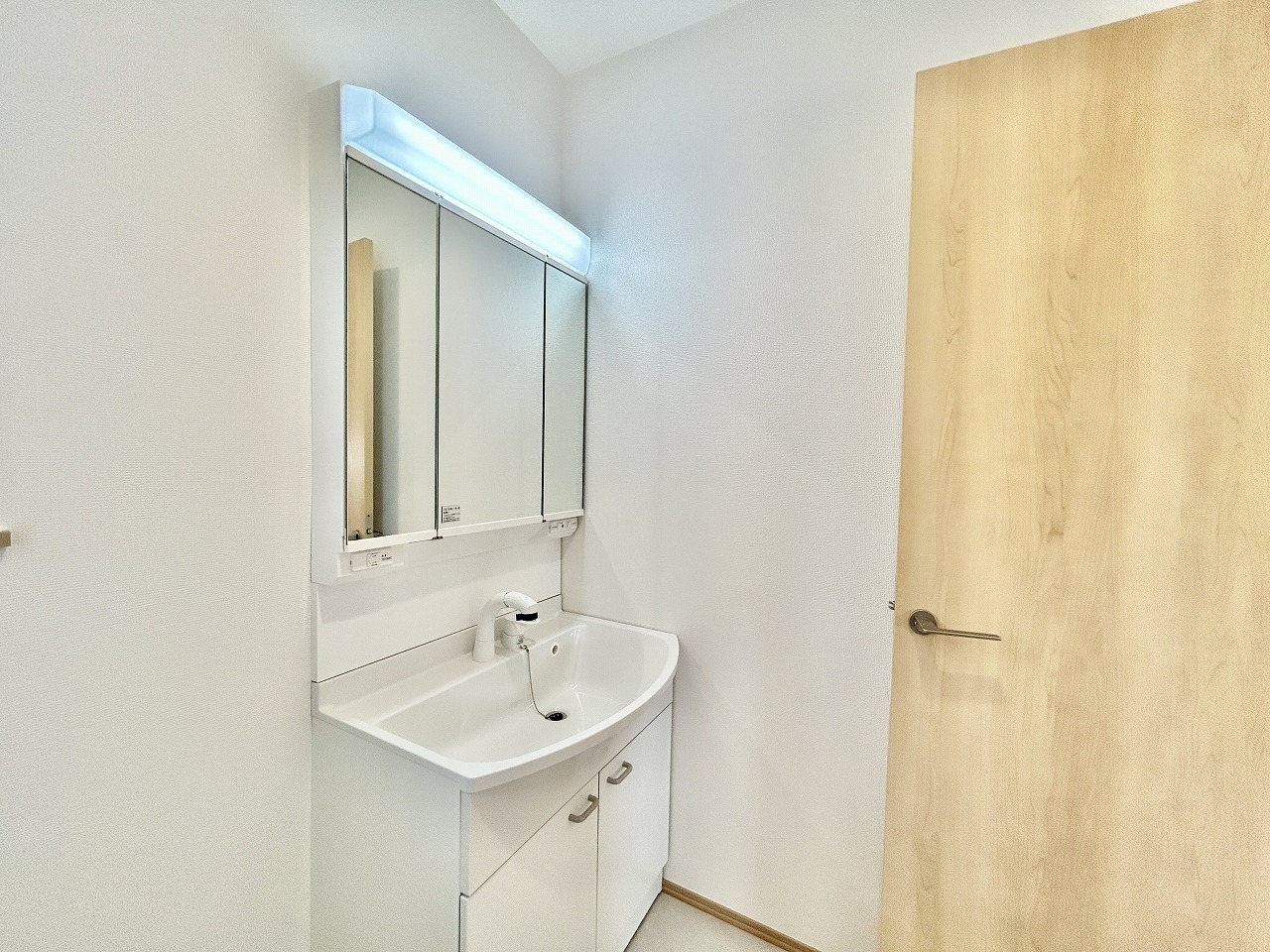 お出かけ前の身だしなみに一歩差がつく三面鏡。ミラー裏にはたっぷり収納もございます。