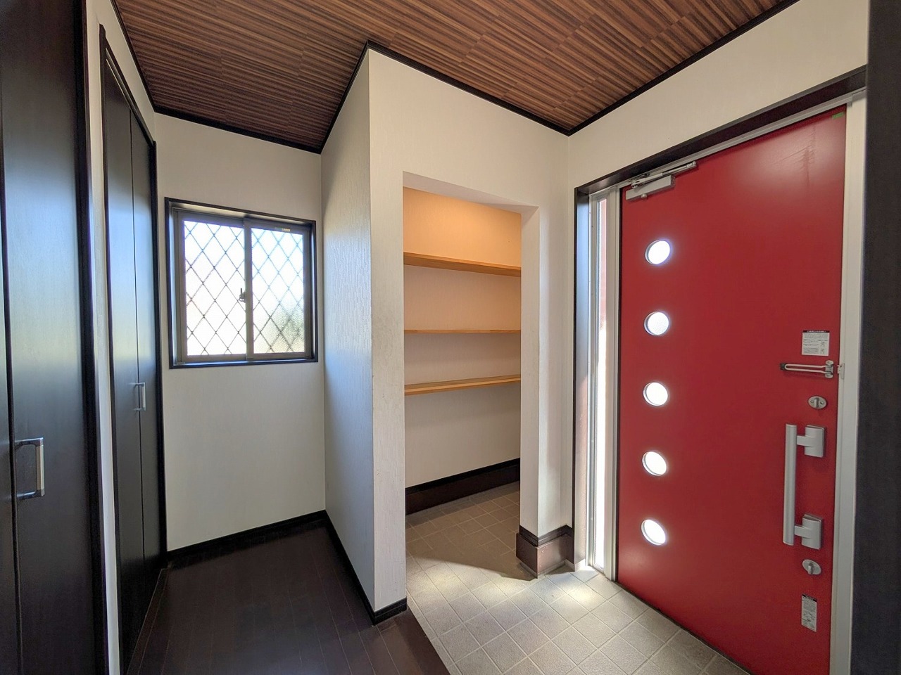 玄関横にシューズインクローク付き、雨具や三輪車を置いても余裕の広さ。