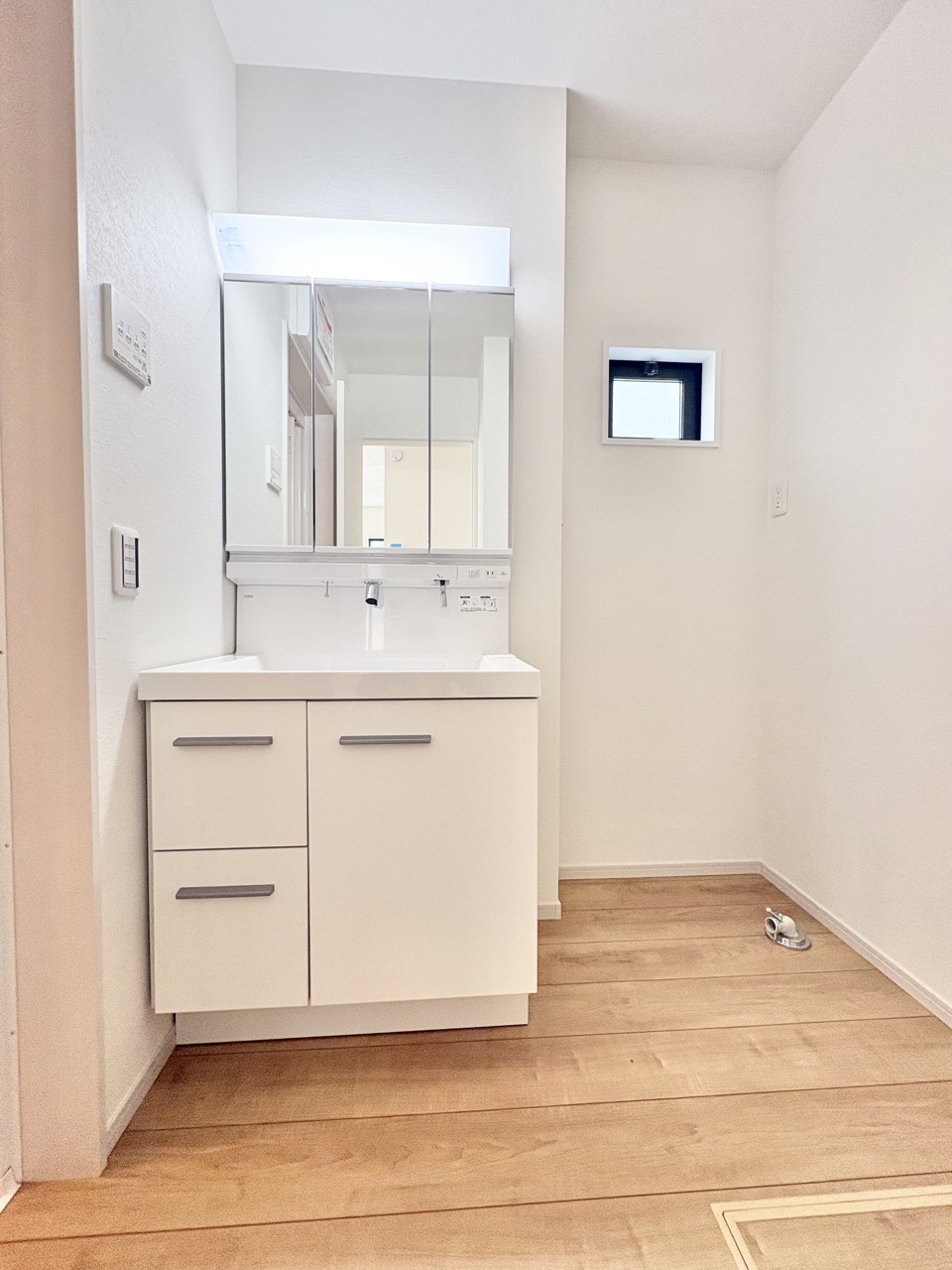 木目調の床と白い壁が調和する、清潔感あふれる空間