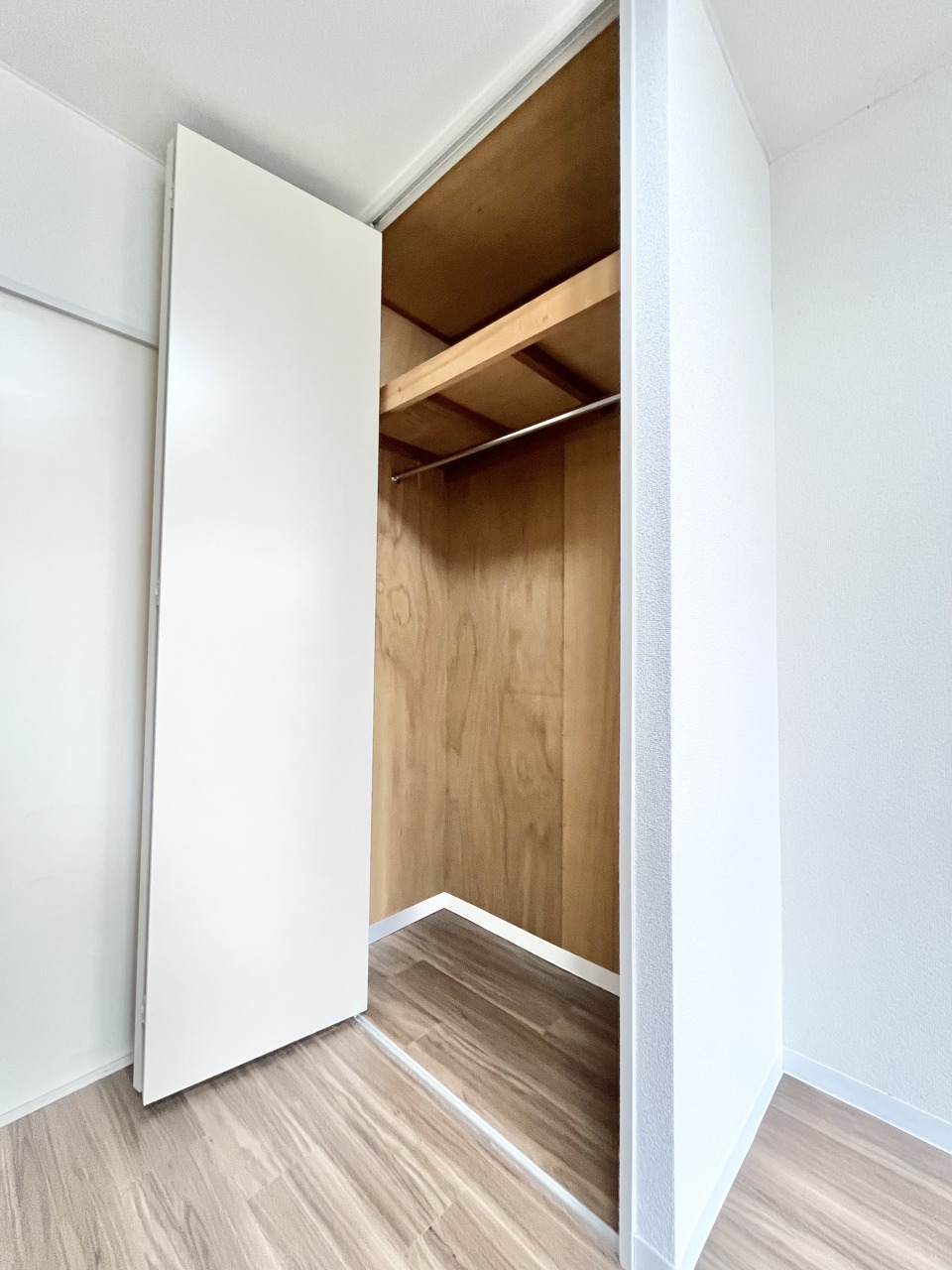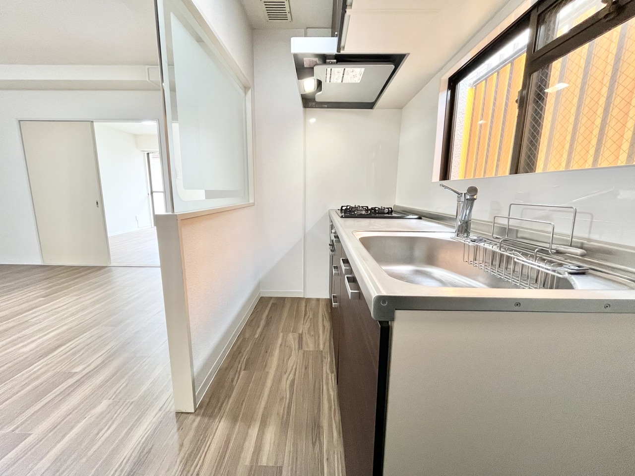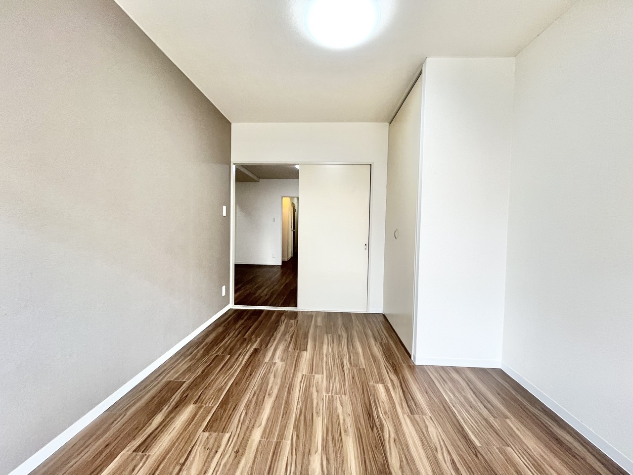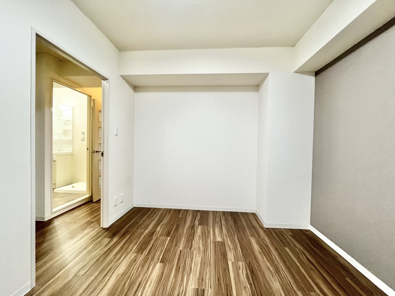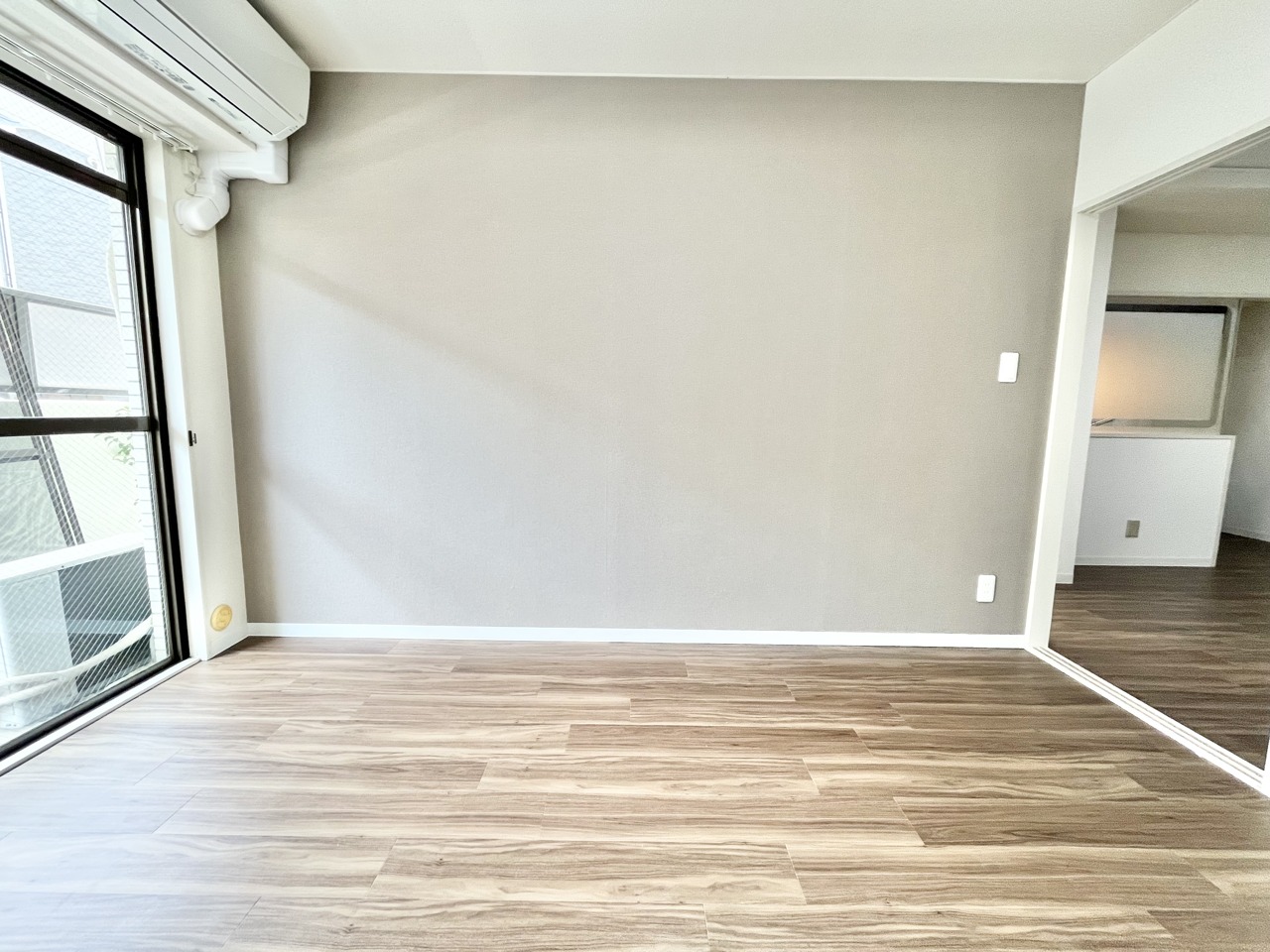 温もりある床材とシンプルな空間が心地よい広がりを感じさせます。