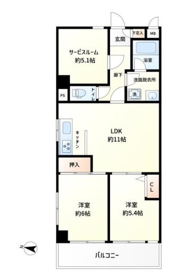 | 間取 | 2SLDK (LDK11帖、洋室6帖、洋室5.4帖、S5.1帖) | ||