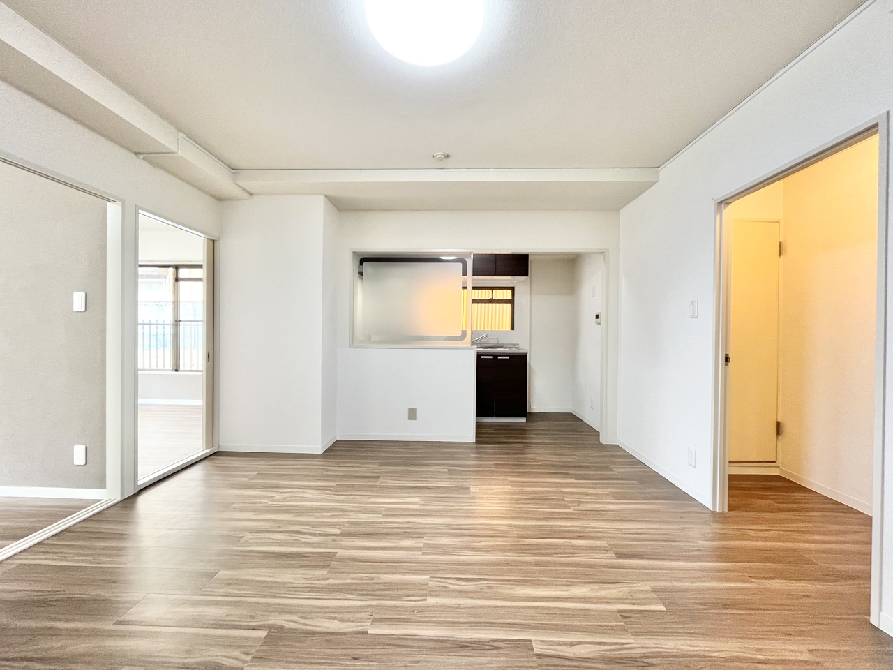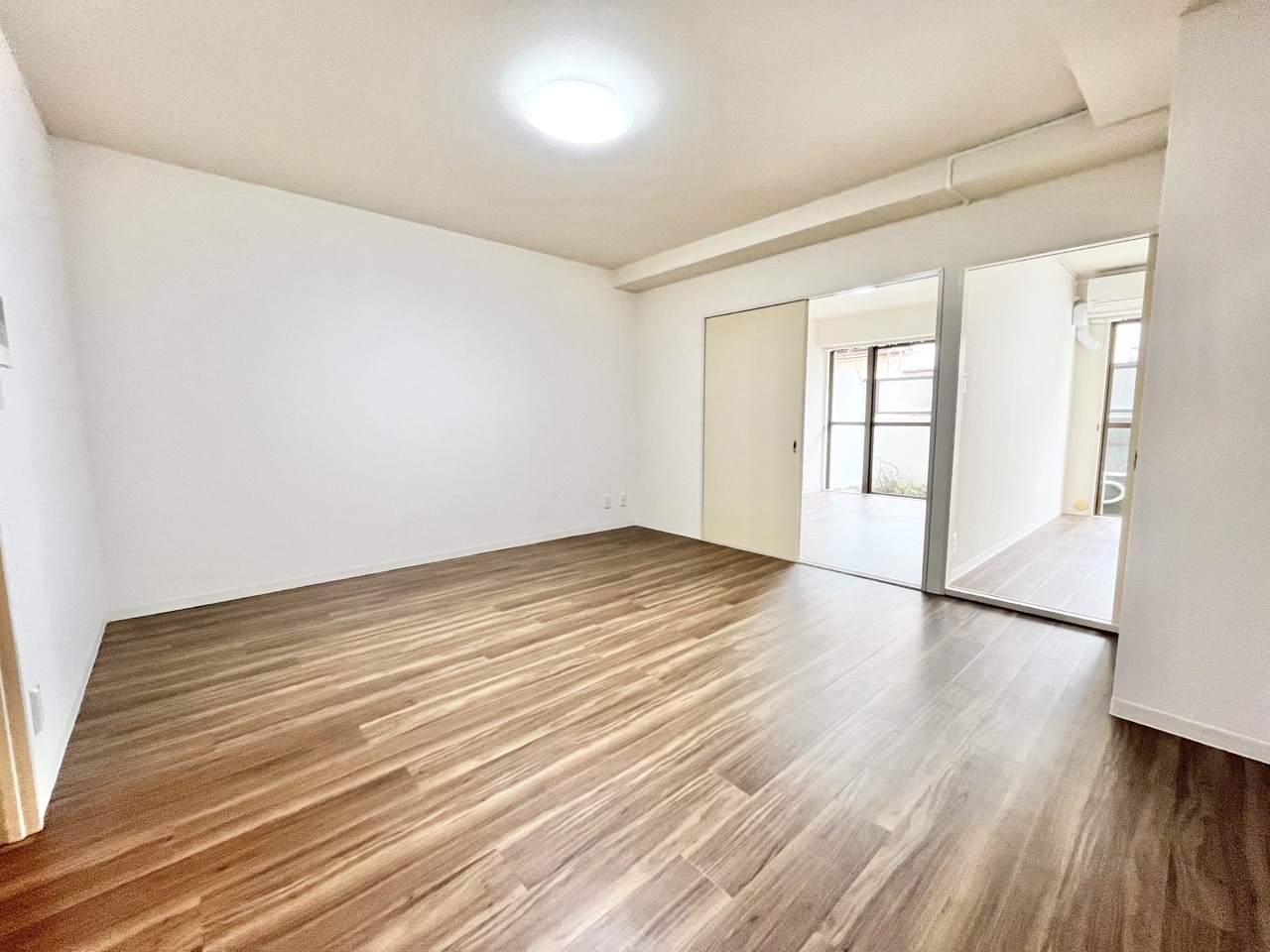 広々とした空間に、木目調の床が温もりを添える。