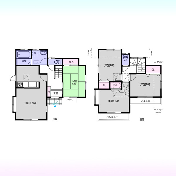 | 間取 | 4LDK (LDK13.5帖、和室6帖、洋室6.5帖、洋室6帖、洋室6帖) | ||