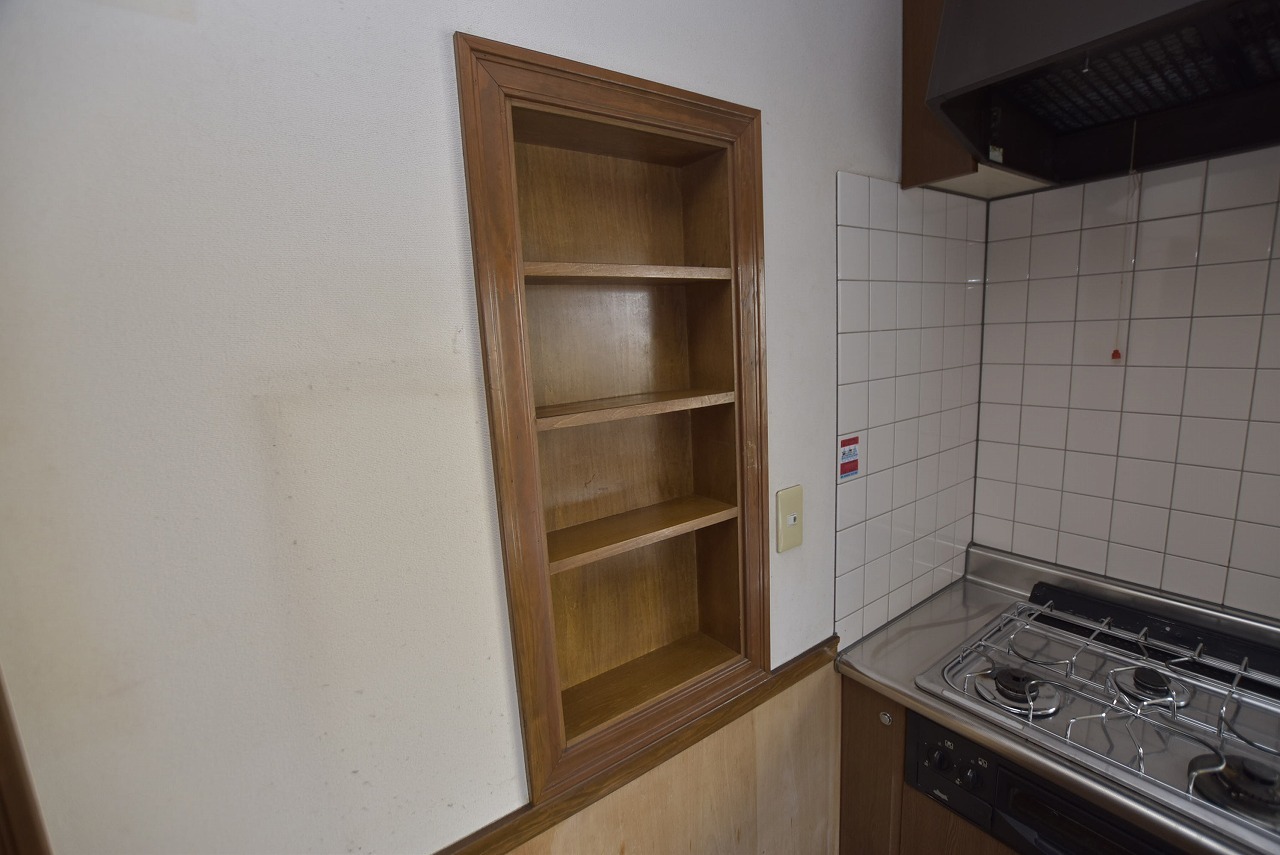手を伸ばせばそこに収納が。安定した使用感の吊戸棚つきのキッチン空間。