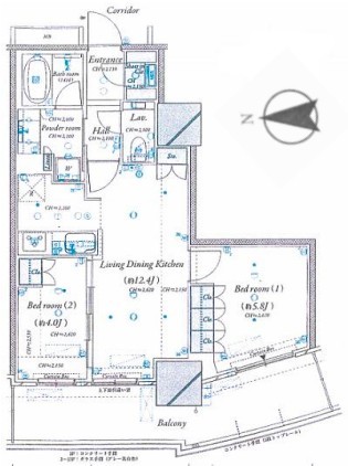 | 間取 | 2LDK (LDK12.4帖、洋室5.8帖、洋室4.0帖) | ||
