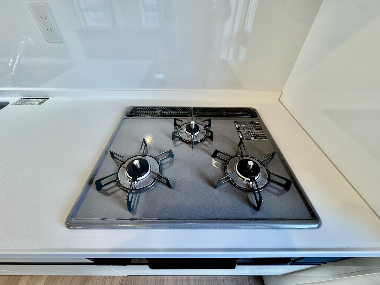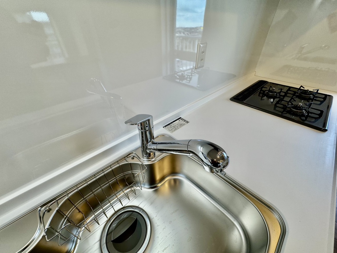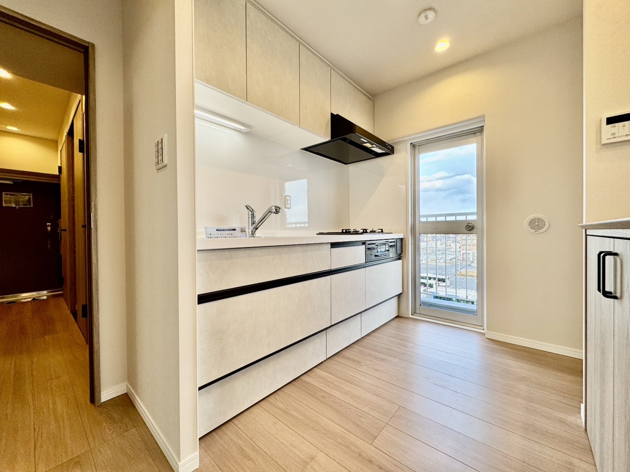 手を伸ばせばそこに収納が。安定した使用感の吊戸棚つきのキッチン空間。