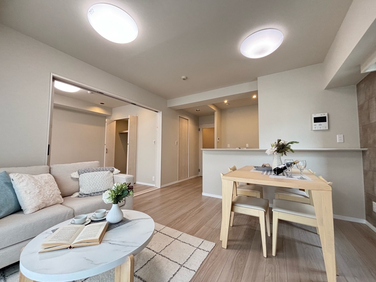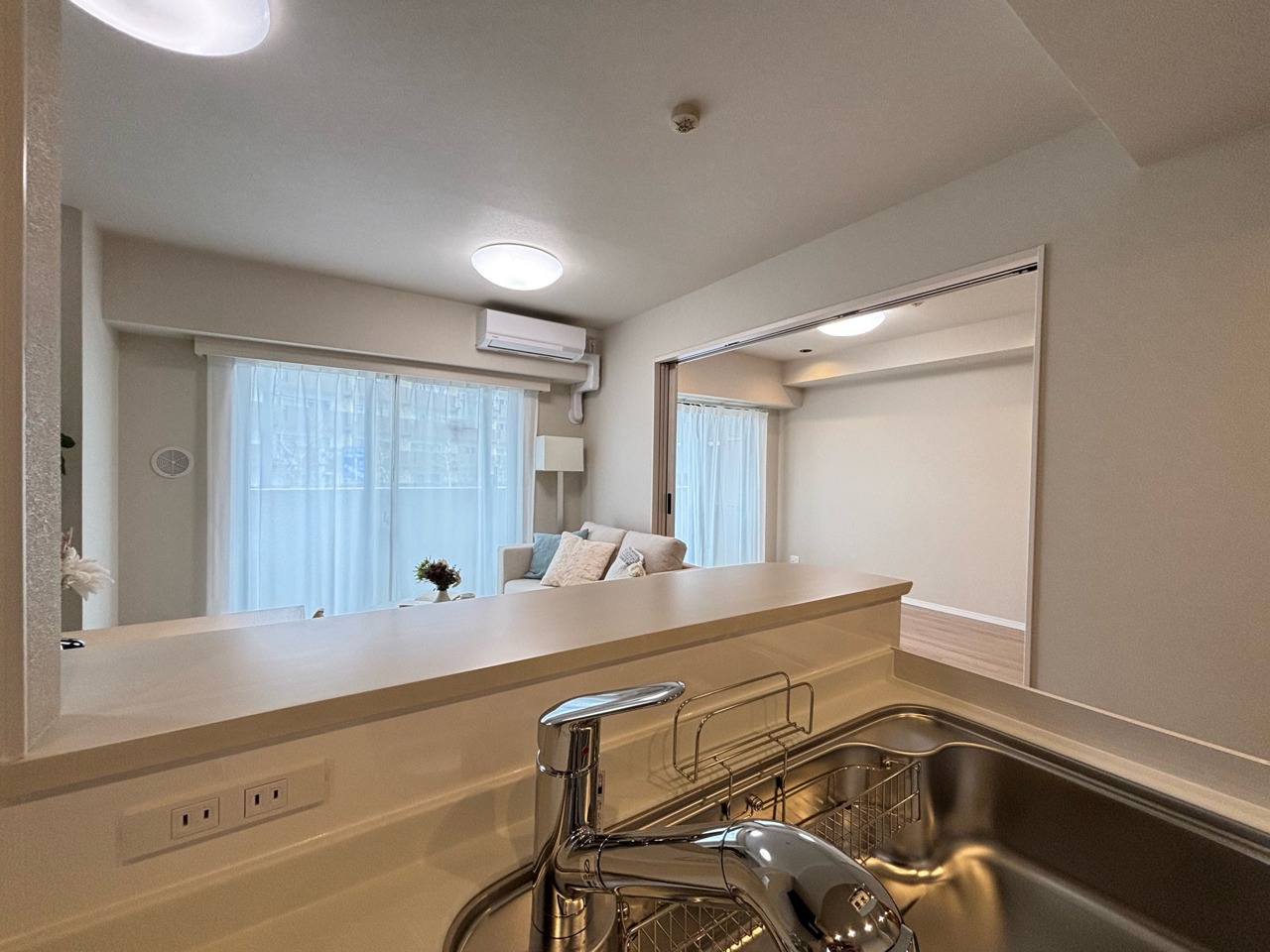 開放的な三方向角部屋住戸、室内リノベーション物件、食洗器や浴室乾燥機など設備も充実。オートロック、宅配ボックス、管理体制良好。
