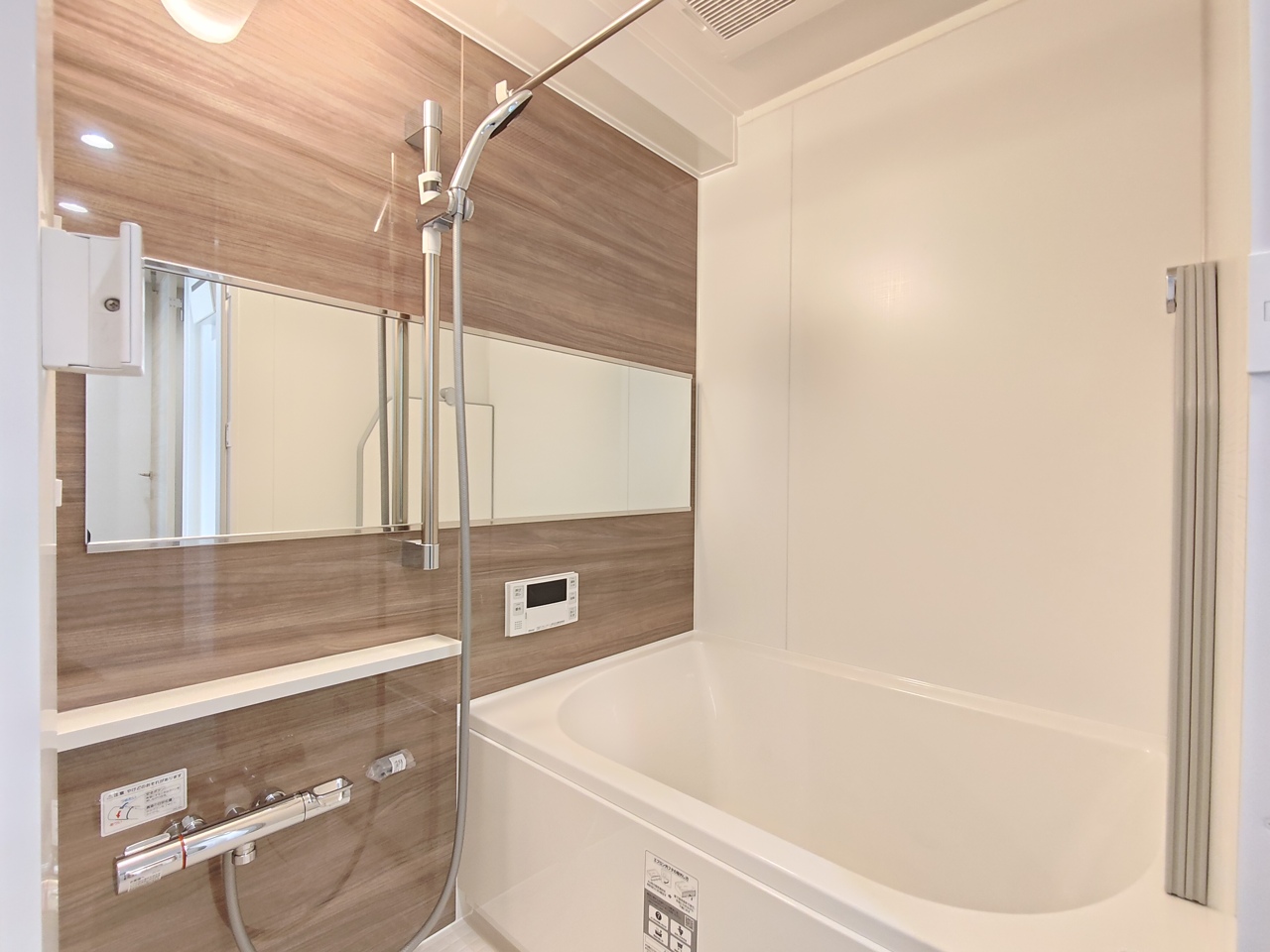 便利な浴室暖房乾燥機付きのシステムバス。 冷めにくいW保温浴槽と節水仕様シャワーヘッドを採用しました。