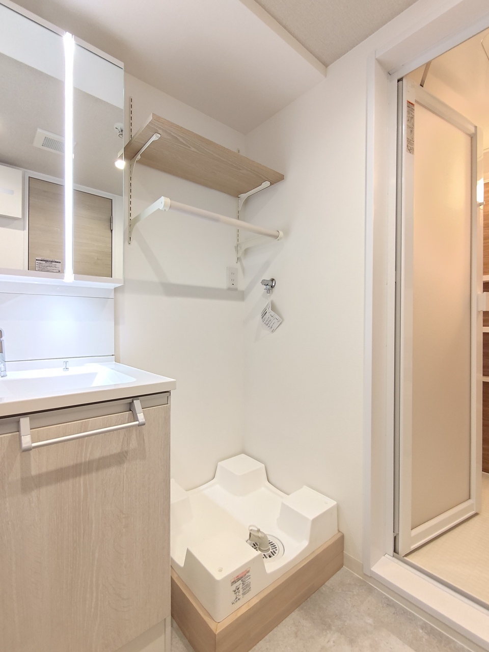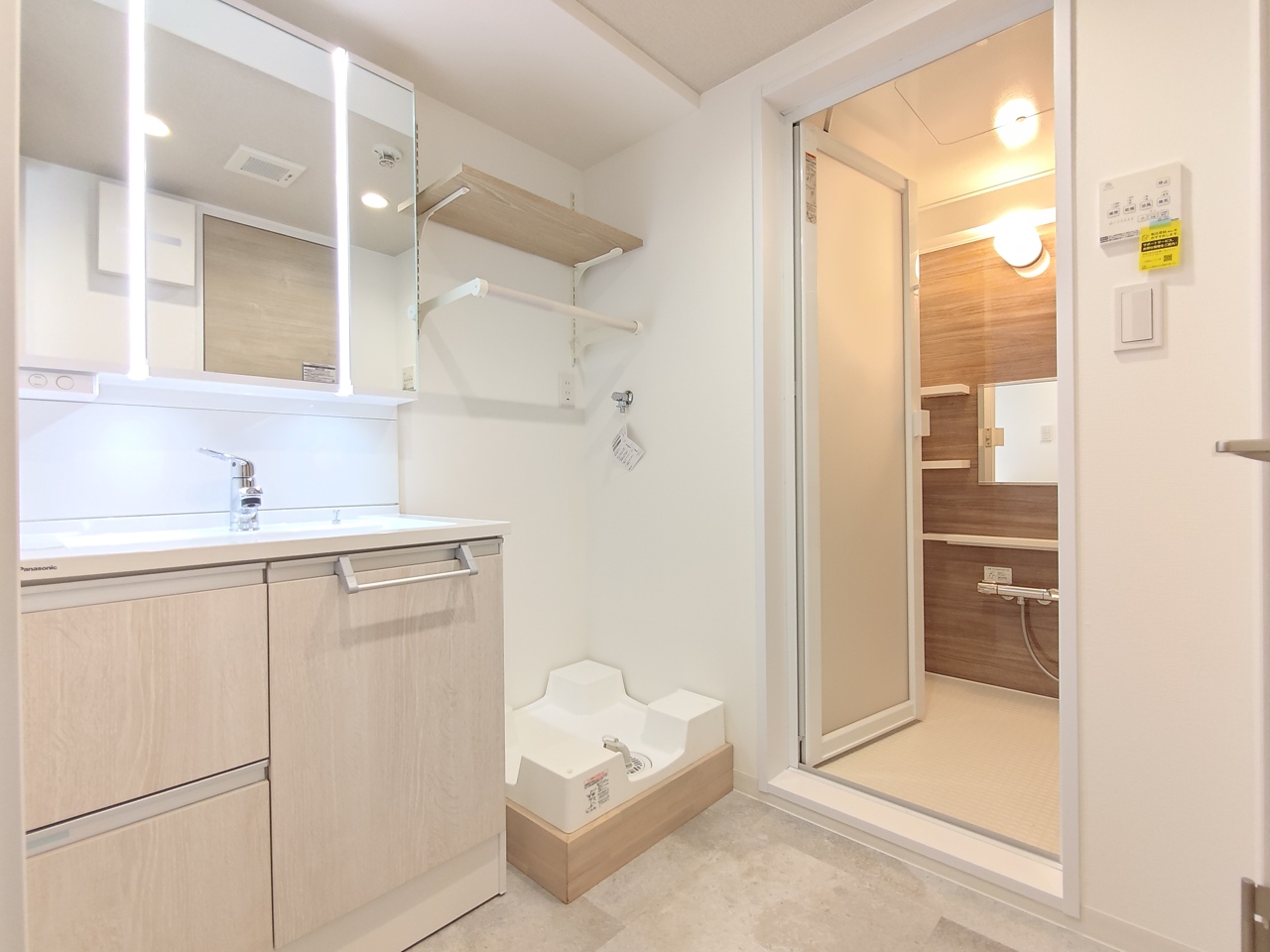 足元に設置された防水パンは、洗濯機運転中の振動・騒音を抑えてくれます。