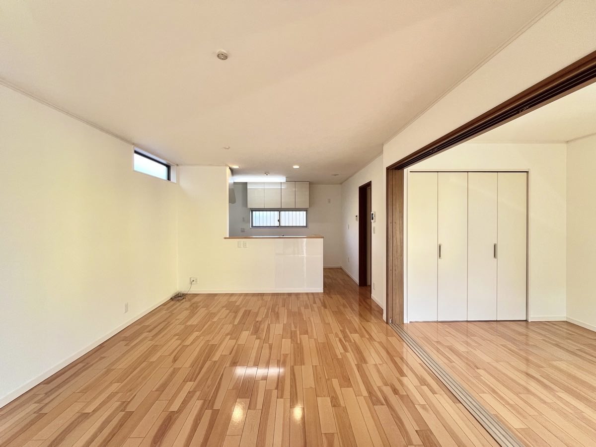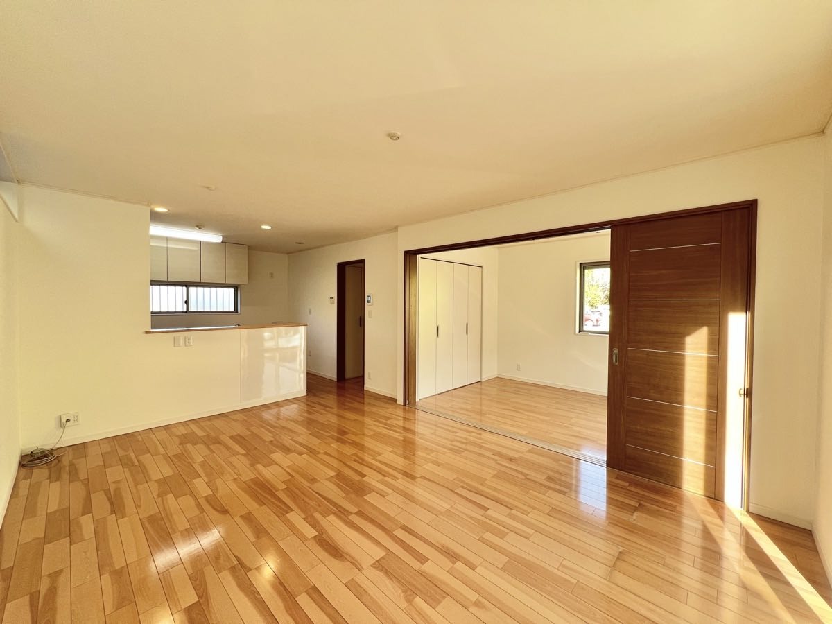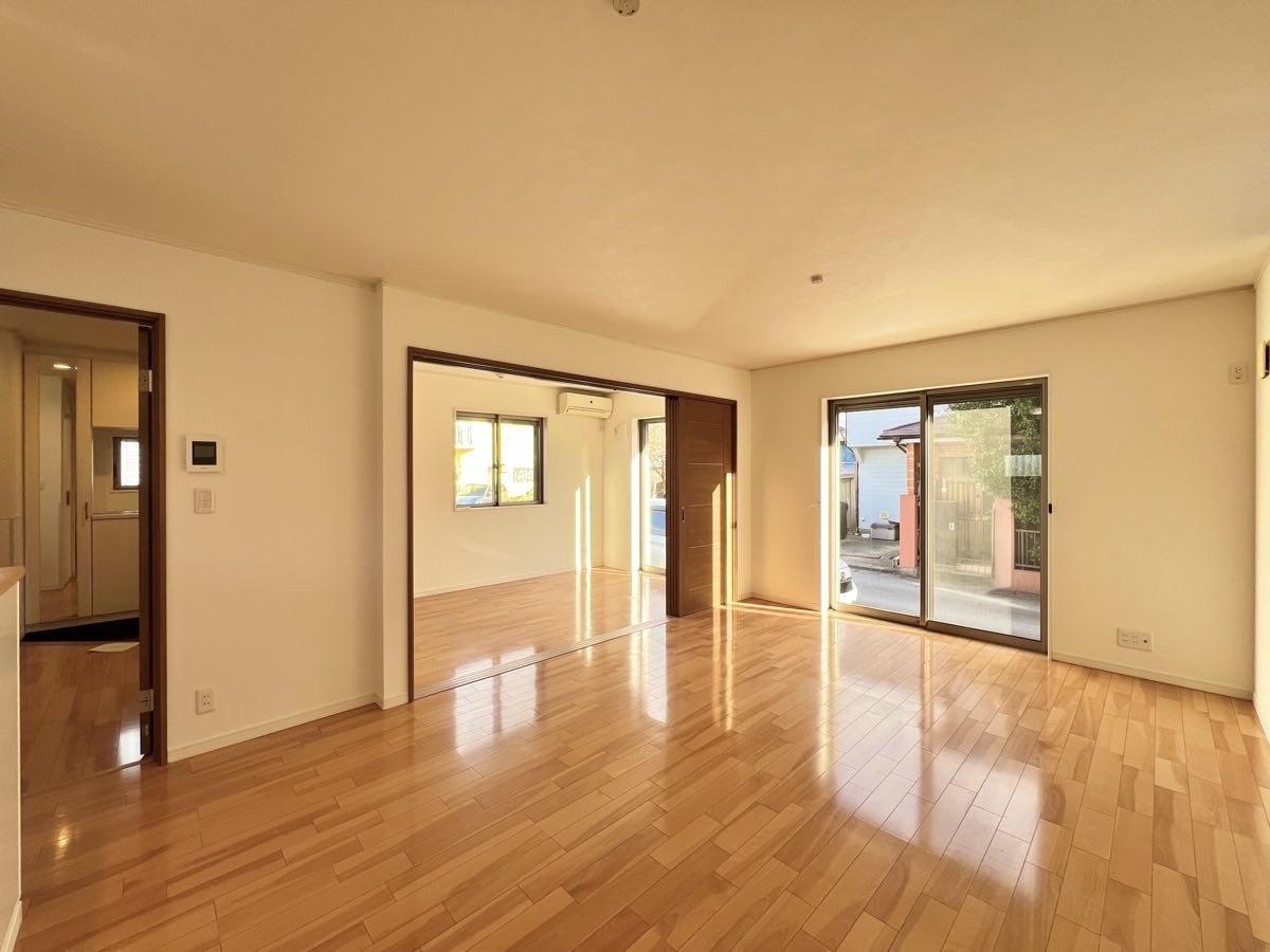 明るい木目の床が広がり、心地よい寛ぎを感じる空間。