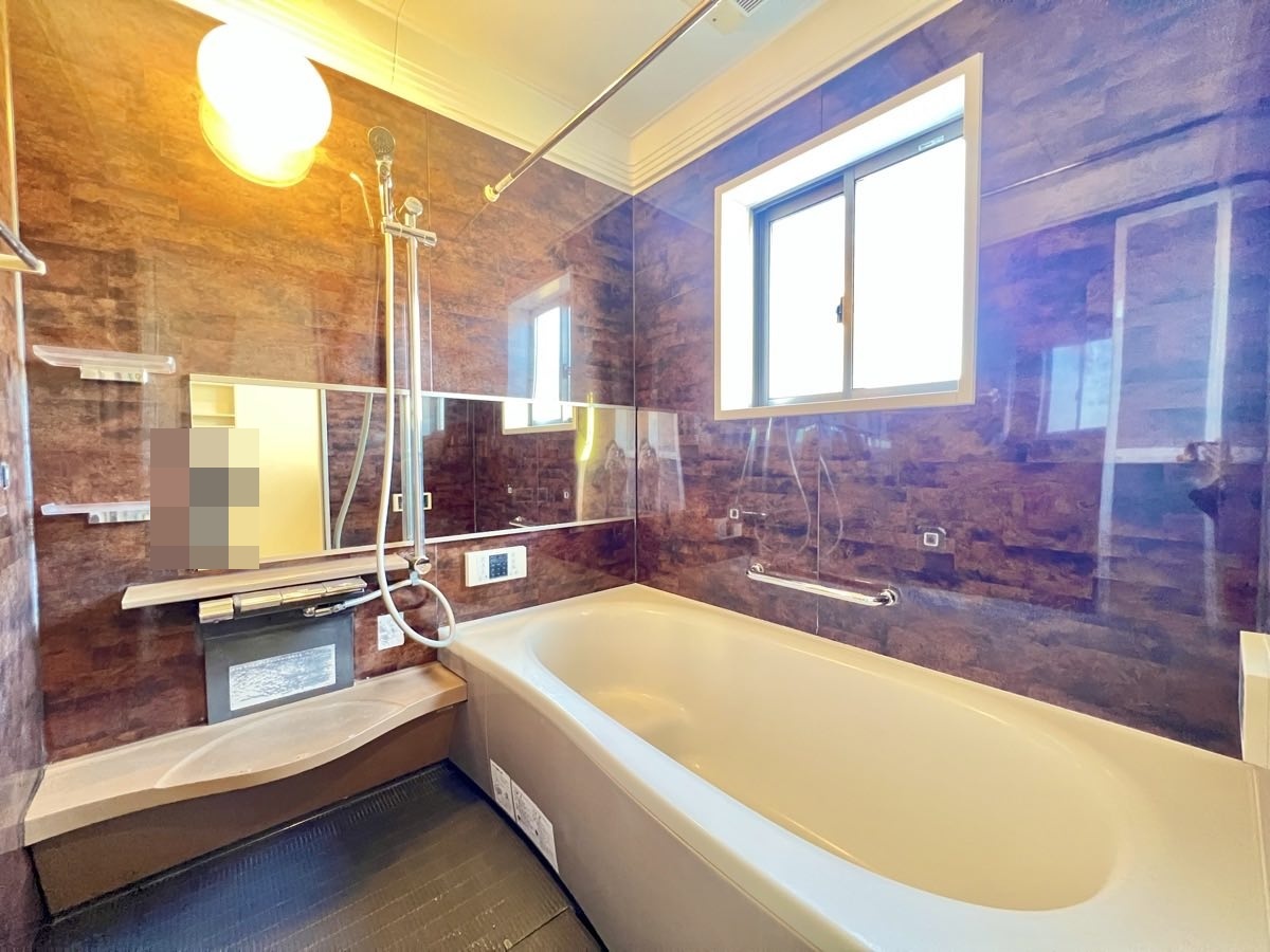 温もりを感じる色合いに包まれ、ゆったりと寛げるお風呂空間。