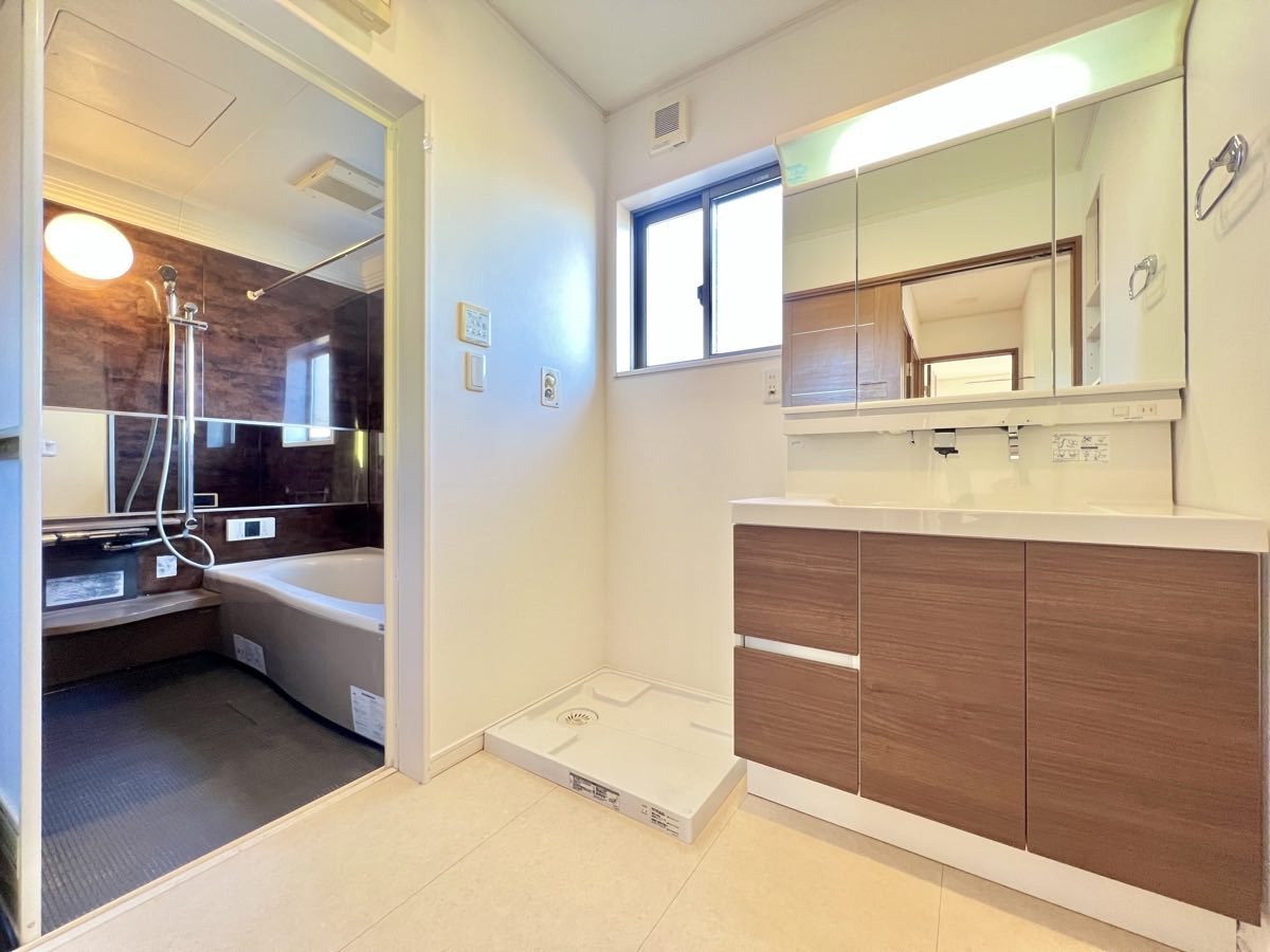 清潔感あふれる洗面空間で、毎日の身支度が心地よく。