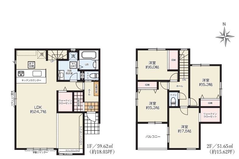| 間取 | 4LDK (LDK24.7帖、洋室7.5帖、洋室6帖、洋室5.3帖、洋室5.3帖) | ||