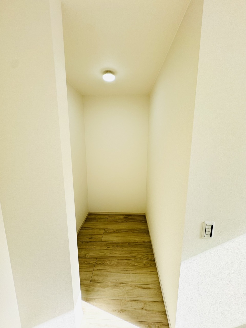 季節物の衣類もスッキリ収納できる、ウォークインクローゼット。