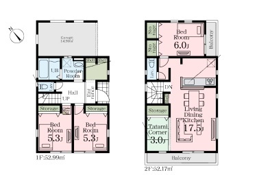 | 間取 | 3LDK + 畳コーナー3帖 (LDK17.5帖、洋室6帖、洋室5.3帖、洋室5.3帖) | ||