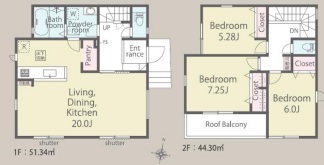 | 間取 | 3LDK (LDK20帖、洋室7.25帖、洋室6帖、洋室5.28帖) | ||