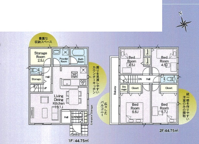 | 間取 | 4LDK (LDK15.1帖、洋室6.6帖、洋室5.7帖、洋室4.5帖、洋室4.5帖、S2.5帖) | ||