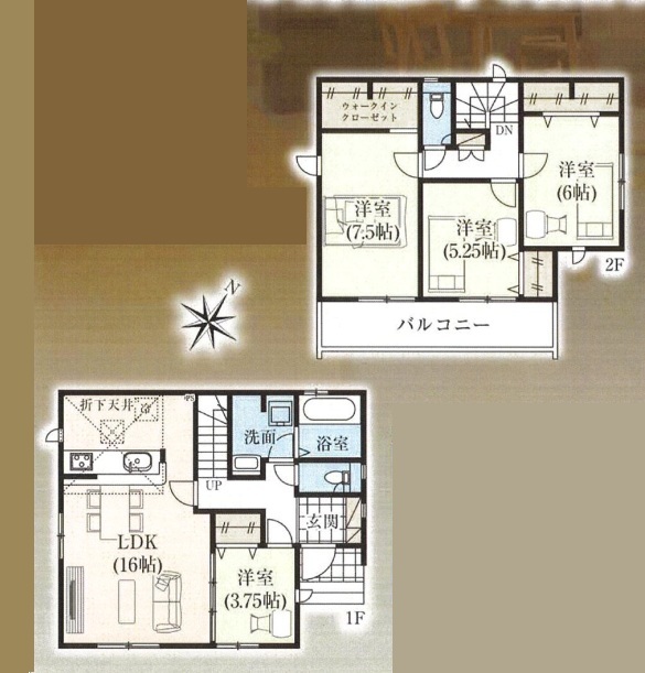 | 間取 | 4LDK (LDK16帖、洋室7.5帖、洋室6帖、洋室5.25帖、洋室3.75帖) | ||
