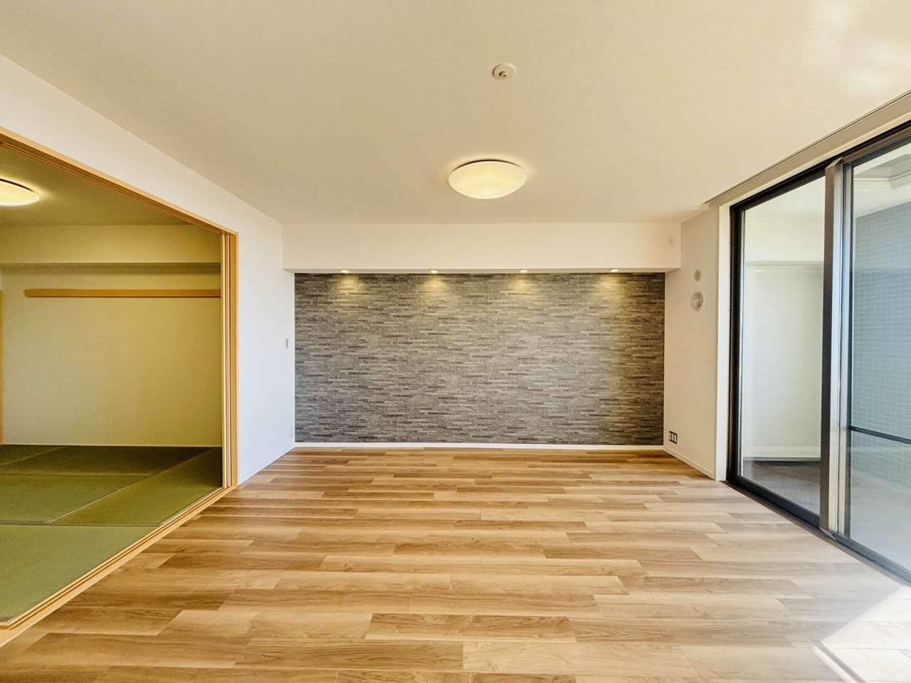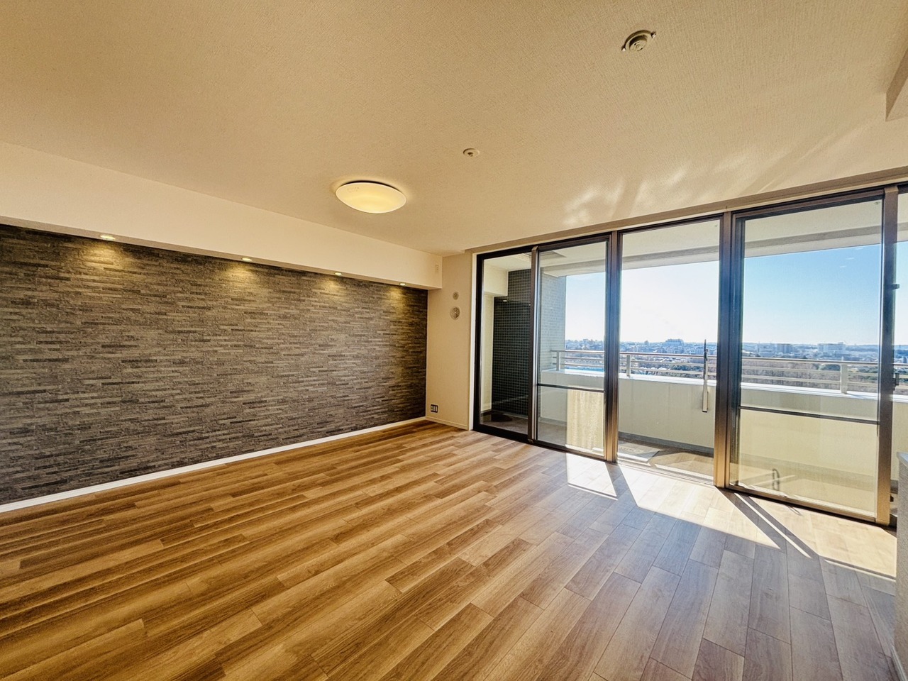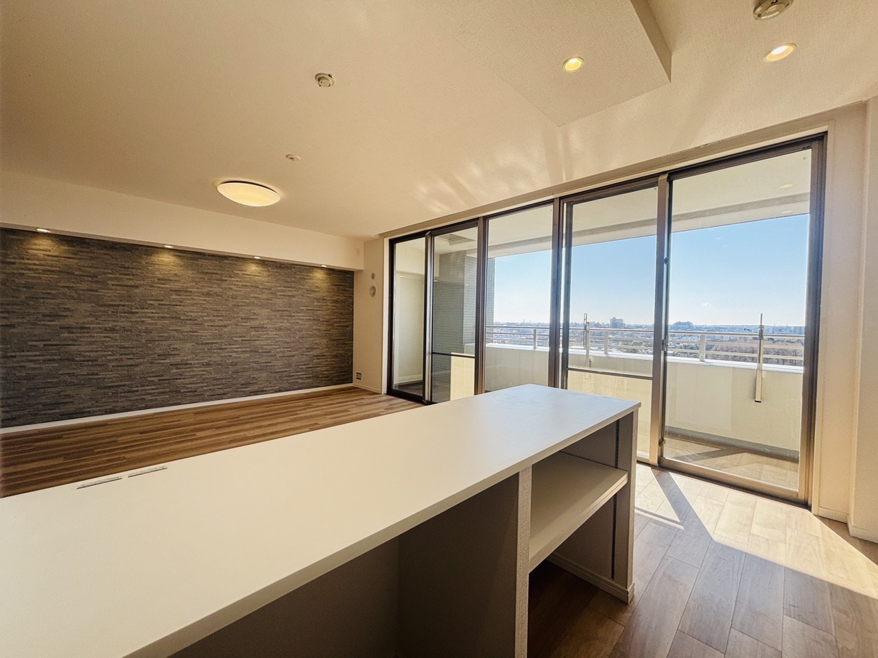 大きな開口部から明るい光が差し込む、日中の室内の明るさがこの部屋の魅力です。
