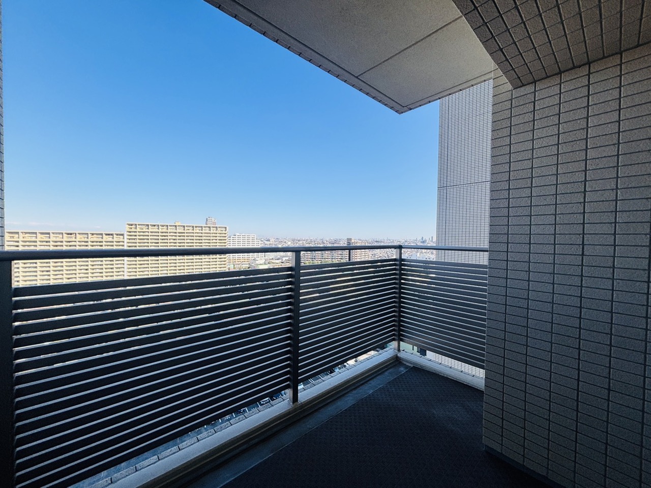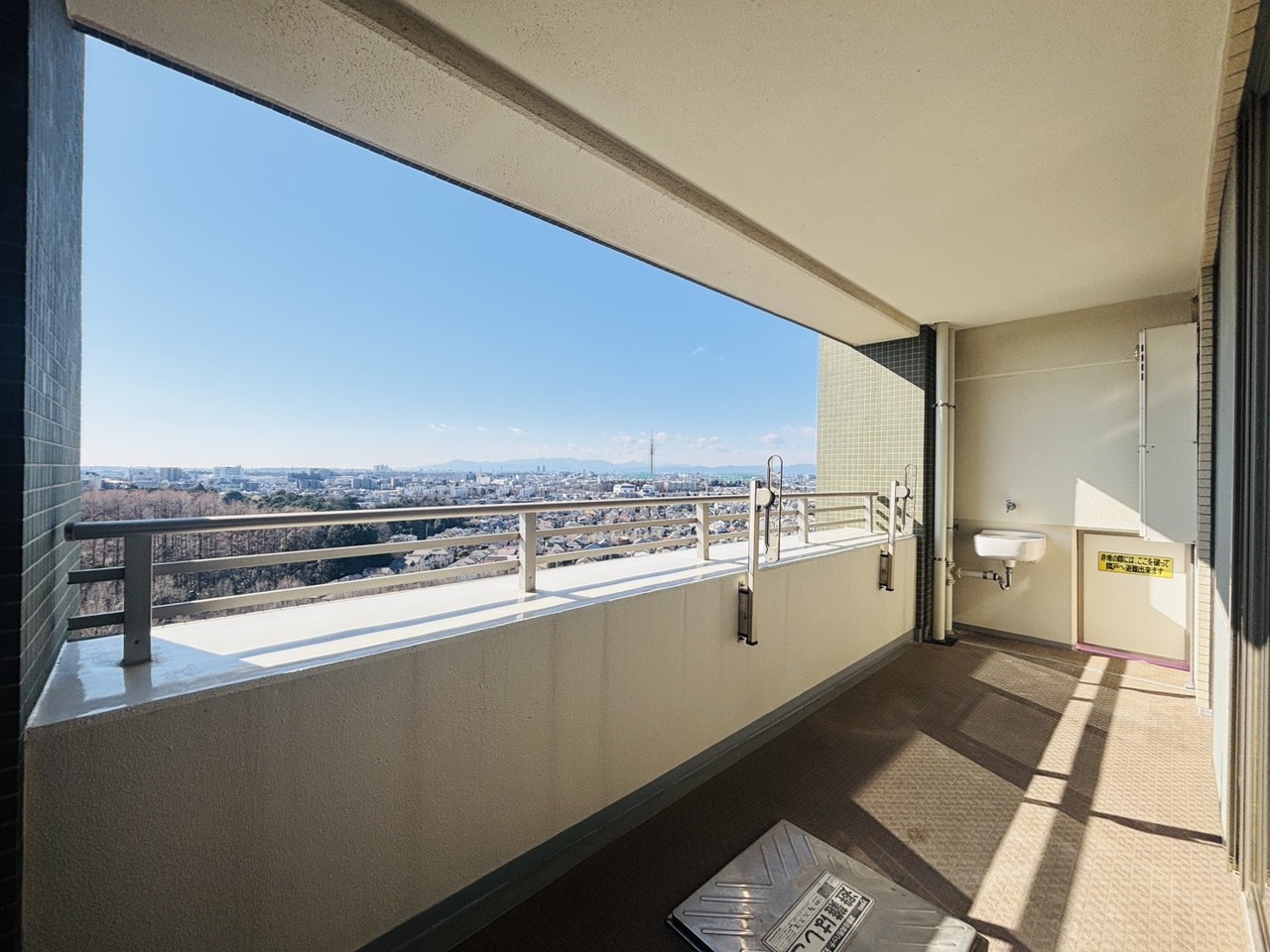 陽ざしが差込む明るいバルコニー。奥行きのあるバルコニーはお洗濯時に助かります。