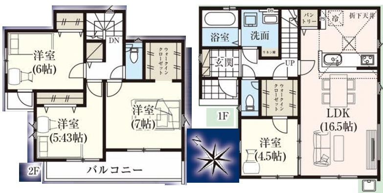 | 間取 | 3LDK+2WIC+パントリー+リネン庫 (LDK16.5帖、洋室7帖、洋室6帖、洋室5.43帖、洋室4.5帖) | ||