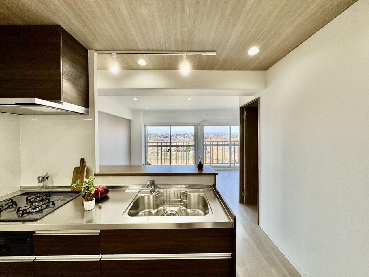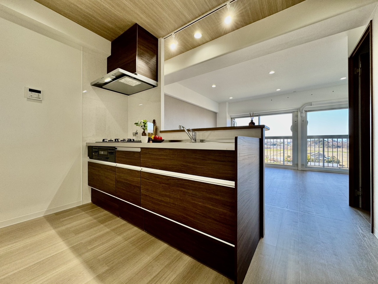 吊戸棚をなくした対面LDKはキッチンに立つ人の視界をワイドにしてくれます。
