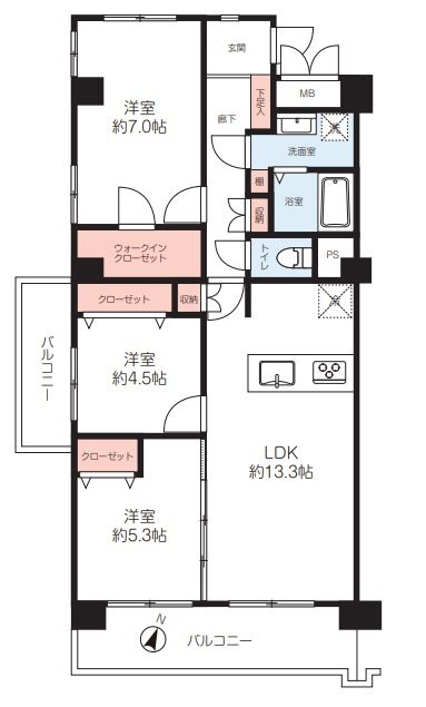 | 間取 | 3LDK (LDK13.3帖) | ||