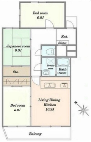 | 間取 | 3LDK (LDK10.3帖、洋室6.0帖、洋室6.0帖、和室6.0帖) | ||