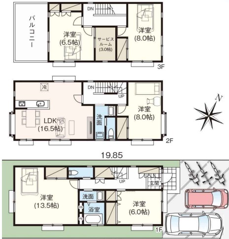 | 間取 | 5SLDK (LDK16.5帖、洋室13.5帖、洋室8.0帖、洋室8.0帖、洋室6.5帖、洋室6.0帖、S3.0帖) | ||